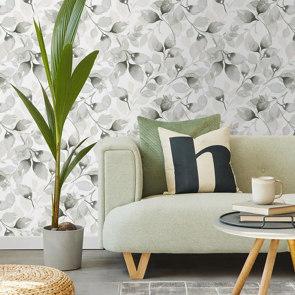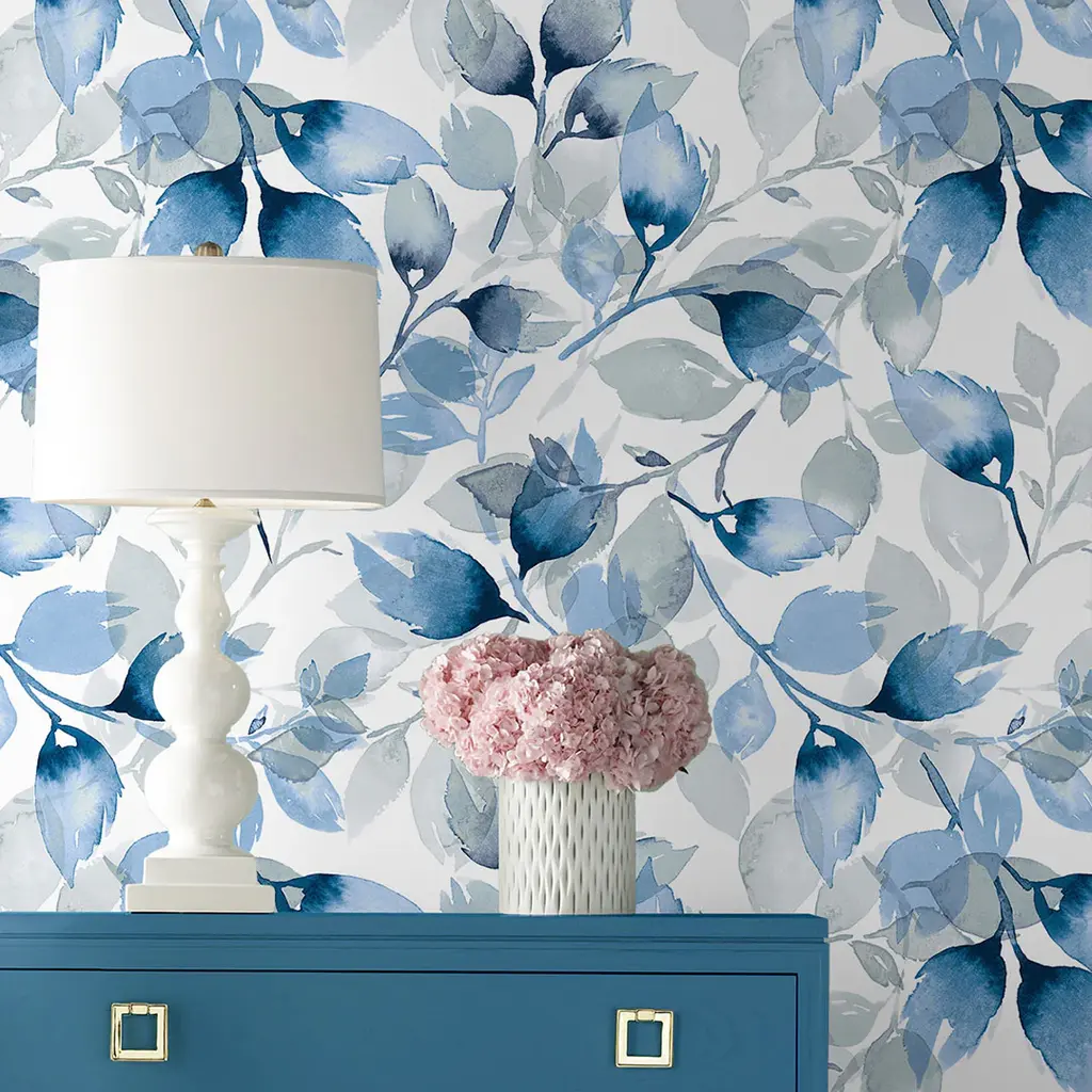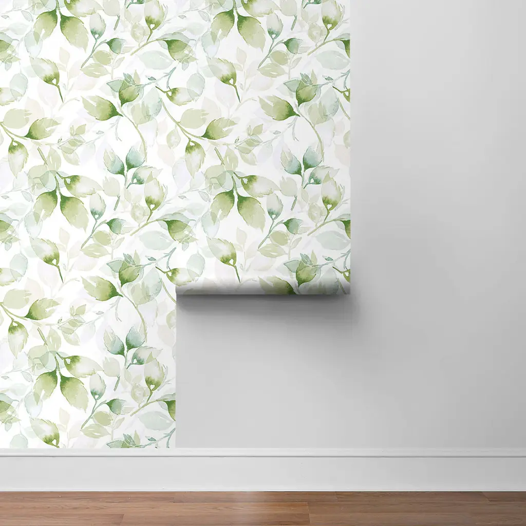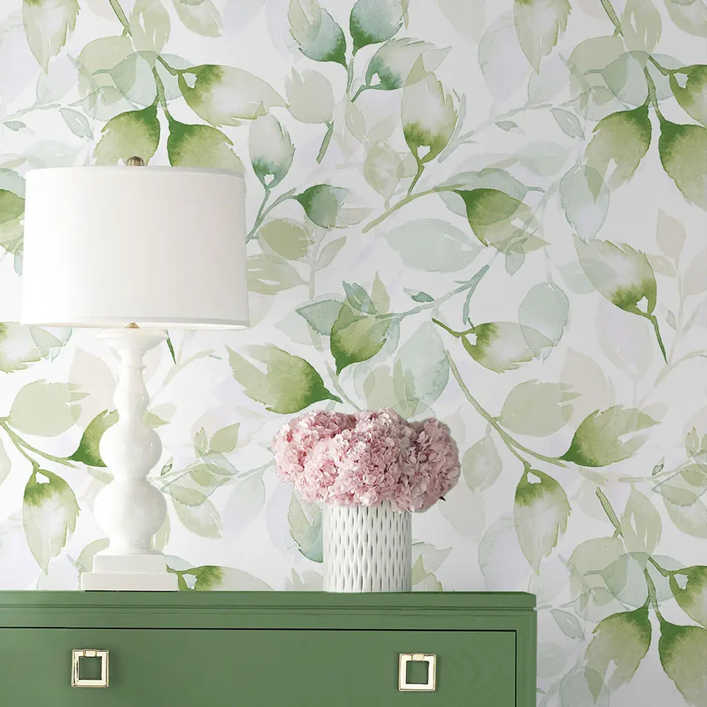 Watercolor Tossed Leaves Peel-And-Stick Luxe Haven Wallpaper