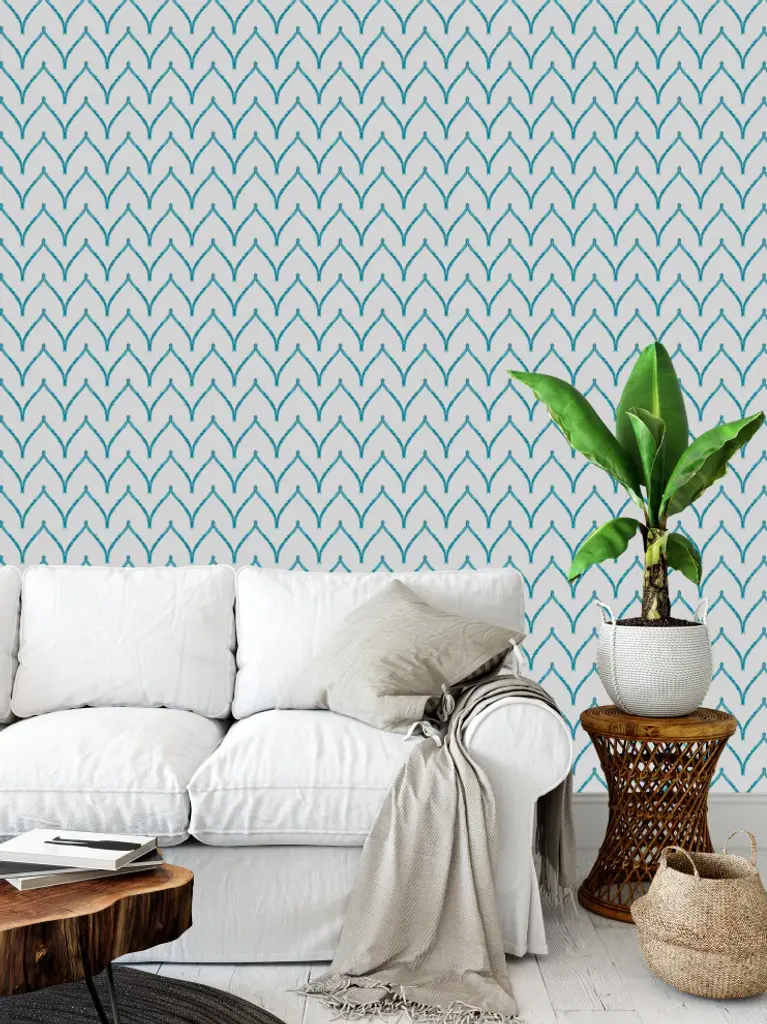 Waves Blue Wallpaper By Monor Designs, 24"x72"