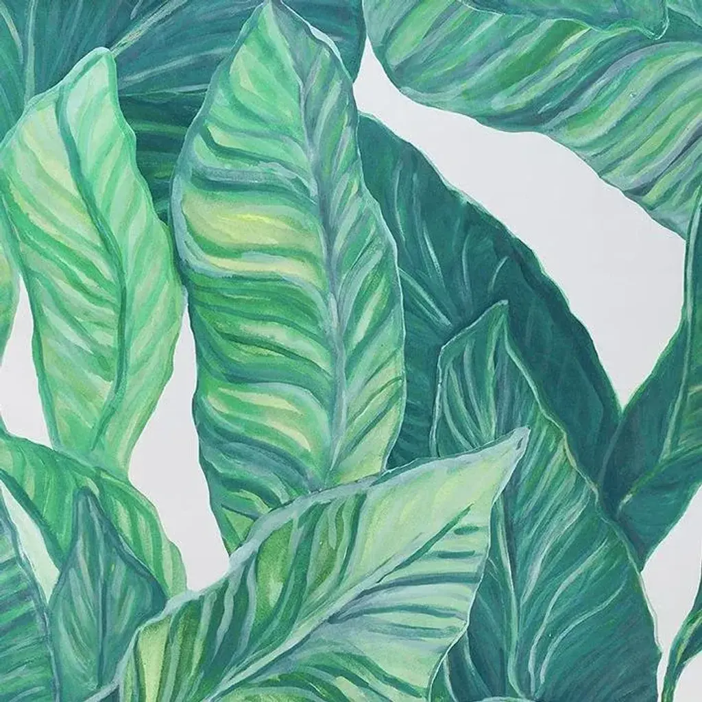 Featuring layered life-sized leaves of the bird of paradise, this large-scale botanical wallpaper print is a wild and immersive experience – like listening to the full-bore energy of the 1987 Guns N' Roses hit it is named after. Unlike the concrete jungle in the song, however, this jungle won't bring you to your na-na-na-knees, but uplift you with the beauty of nature. Stevie Howell's Welcome to the Jungle Green wallpaper is digitally printed with water-based inks on eco-friendly, clay-coated papers. In partnership with One Tree Planted, each wallpaper purchase supports reforestation efforts with a one-for-one business model. For each yard of wallpaper sold, we plant one tree to help clean our air and water, provide homes for wildlife, and contribute to our health and livelihoods. 1 yard of wallpaper = earth-friendly magic! Vertical repeat: 27" 27" wide trimmed paper (comes 30" untrimmed) Swatches are 8" x 10" 10 yard minimum 6 week production time Made in the USA Please note: All of our wallpaper is printed to order with a 4-6 week lead time, and we have a 10 yard minimum.