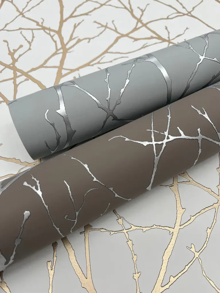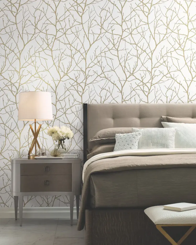 White & Gold Trees Silhouette Wallpaper