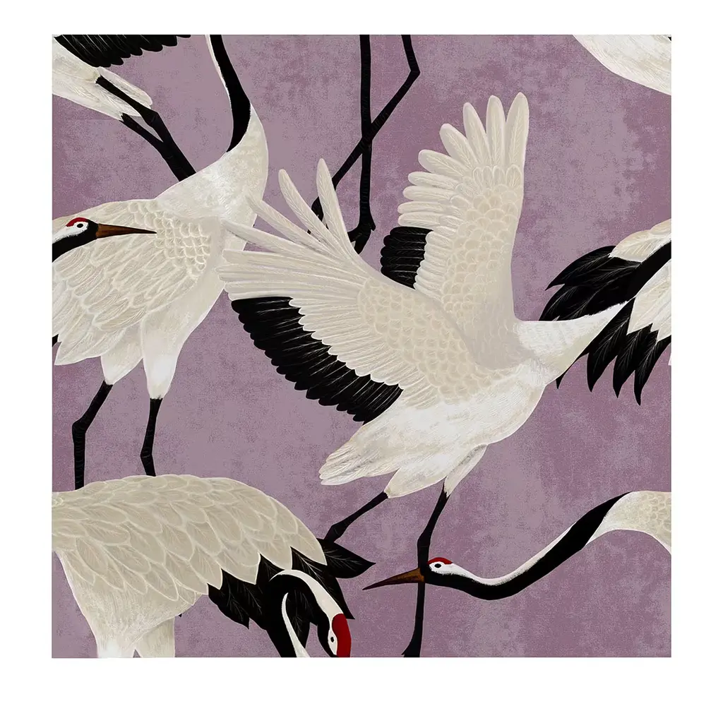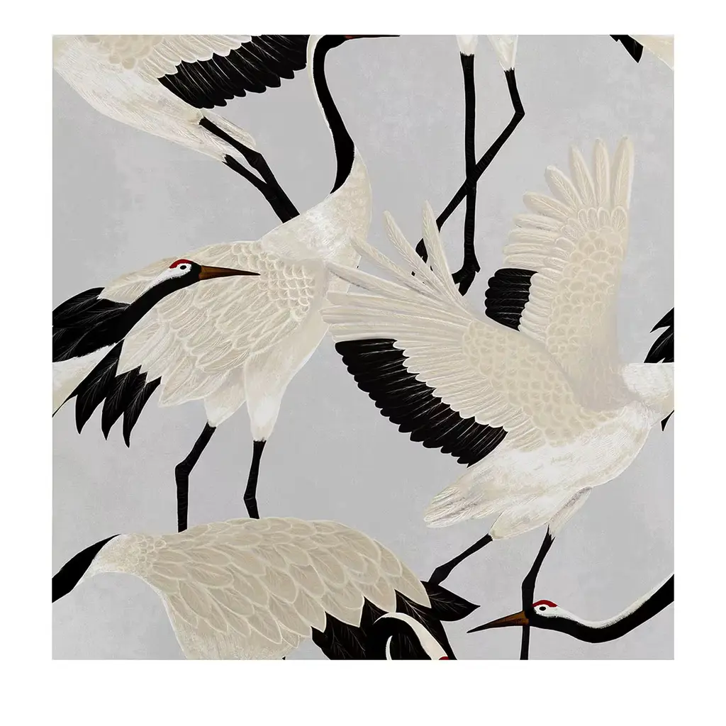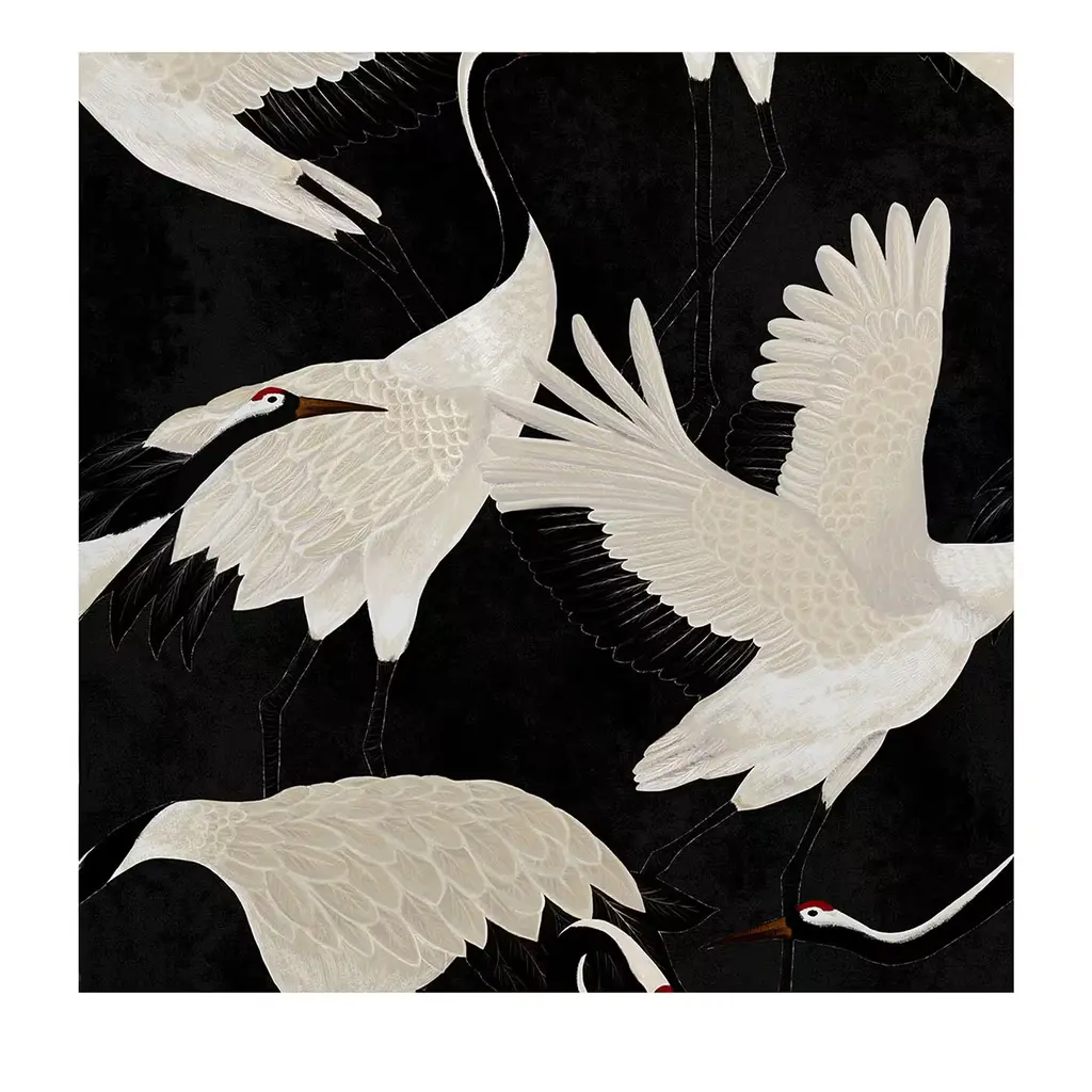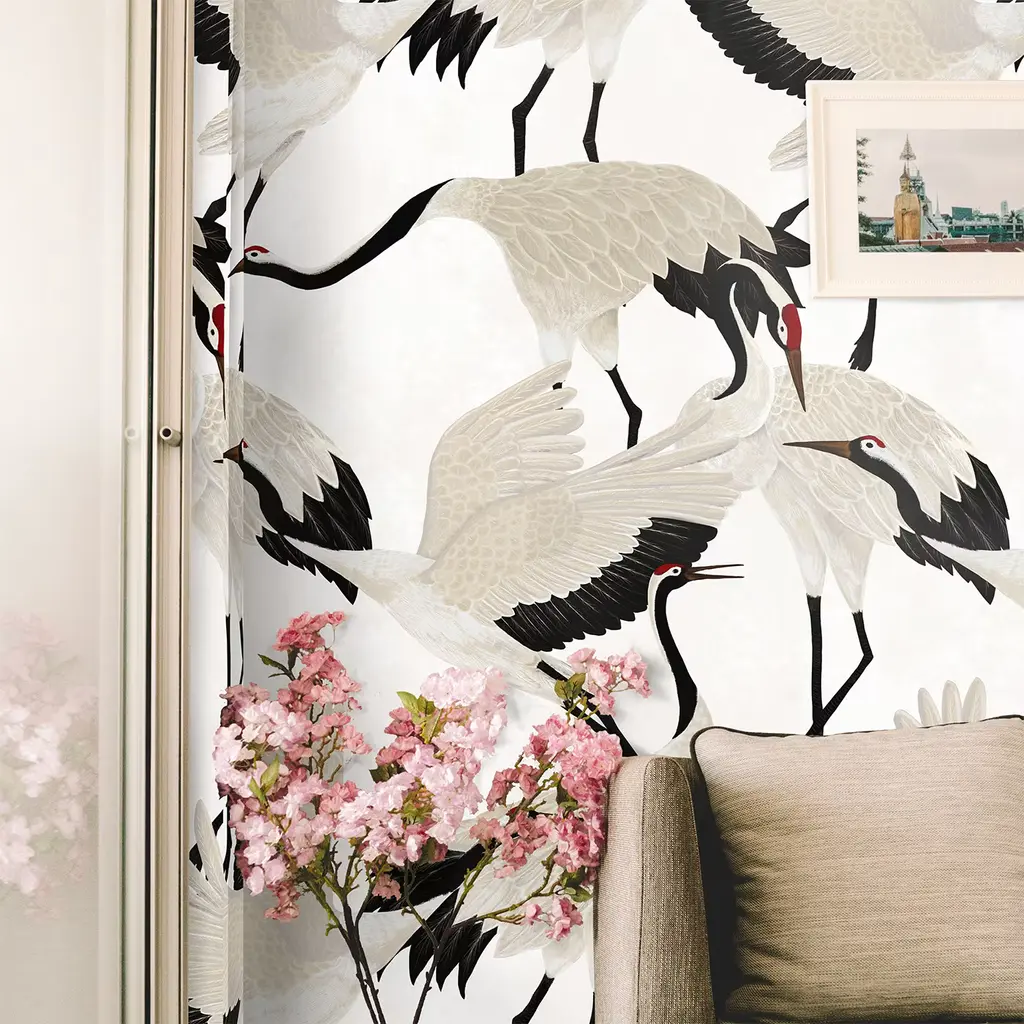 The wallpaper is made from 100% ecological paper, printed with vegan, water-based inks, and free from chemicals and solvents. Each package contains eight sheets. Inspired by 18th-century English tradition and printed in Italy, it's perfect for walls, shelves, and furniture. This wallpaper features a Japanese-style design, with herons set against a white background. Each sheet measures 27.5x39.4 inches/70x100 cm, covering a total area of 5 MQ.