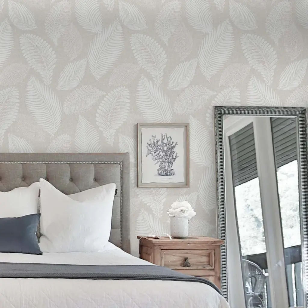 Add a touch of natural elegance to your home with the White Heron Tossed Leaves Wallpaper. From the exclusive Seabrook Designs White Heron collection, this unpasted wallpaper features delicate fern-like leaves cascading on a faux linen background. Screen-printed on high-quality nonwoven paper, it adds a luxurious and stylish finish to any interior. Highlights