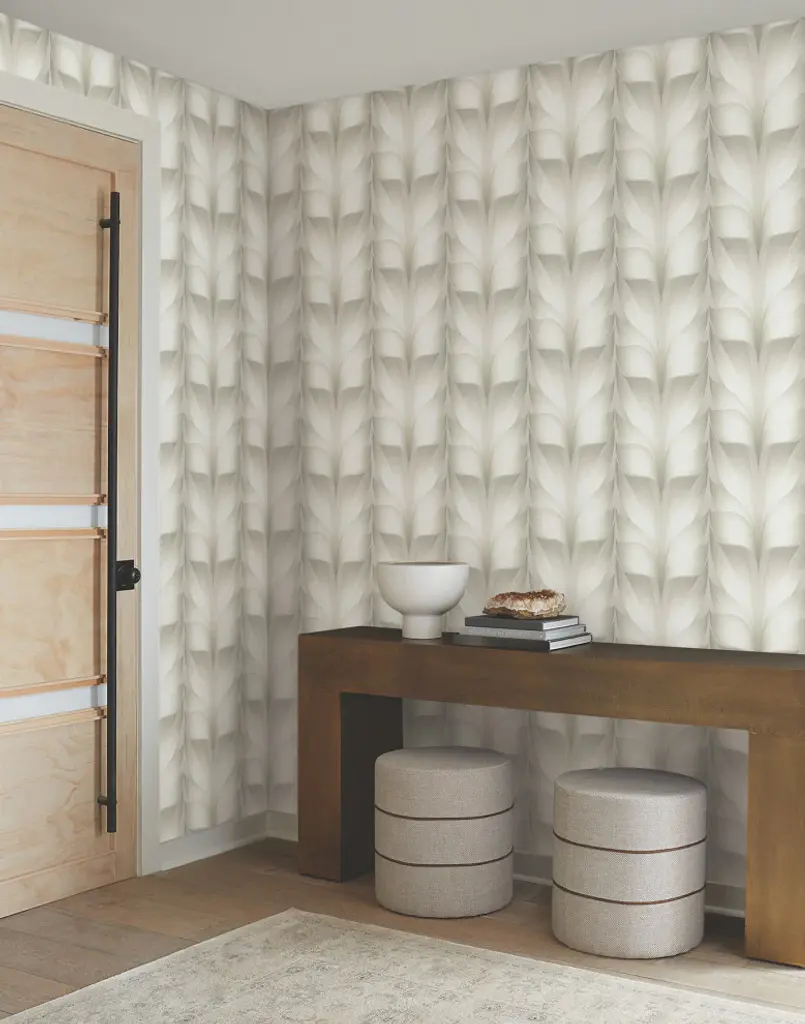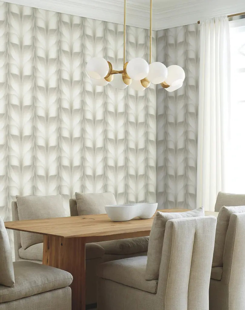 The luminous white and silvery-grey petals of Lotus Light Stripe are complemented by beige, the design balancing fine, soothing delicacy with contemporary scale and elan. This Lotus Light Stripe Wallpaper measures approximately 27 inches wide by 27 feet long, measuring approximately 60.8 square feet per roll. Organic simplicity and lustrous adornment for the modern home. Unpasted non woven material25.25-in repeat, straight matchWashable and strippable27-in by 27-ft long rollCovers about 60.8 square feet