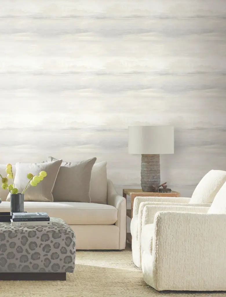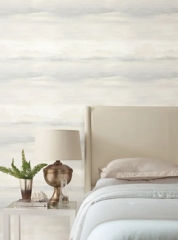 Featuring a melange of subtle shades, Soothing Mists Scenic Wallpaper gives rise to a serene contemplative mood with an enchanting textured wallpaper. This Soothing Mists Scenic Wallpaper measures approximately 27 inches wide by 27 feet long, covering About 60.8 square feet per roll. Created with the highest quality of craftsmanship, this wallpaper is unpasted and uses a light to medium weight paste for easy application and removes from primed walls. Unpasted paper material24-in repeat, straight matchWashable and peelable27-in by 27-ft long rollCovers about 60.8 square feet