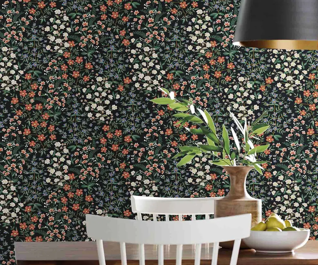 The layered florals of Wildwood Garden create a color-blocked look, with each bloom grouped by bright hue. This wallpaper is screen printed and comes in 27 inch rolls with a 25.25 inch repeat. Due to the printing process, there may be color variations in different print runs. We suggest purchasing all wallpaper needed for a project at one time for the best color consistency. Unopened rolls can be returned.