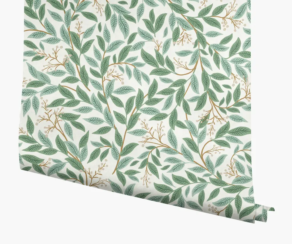 Lush and verdant, Willowberry features metallic vines of greenery that are dotted with berries. This peel & stick wallpaper can easily be removed, making it perfect for rentals and accent walls. The paper is gravure printed with metallic accents and comes in 20.5 inch rolls with a 20.5 inch repeat. Due to the printing process, there may be color variations in different print runs. We suggest purchasing all wallpaper needed for a project at one time for the best color consistency. Unopened rolls can be returned.