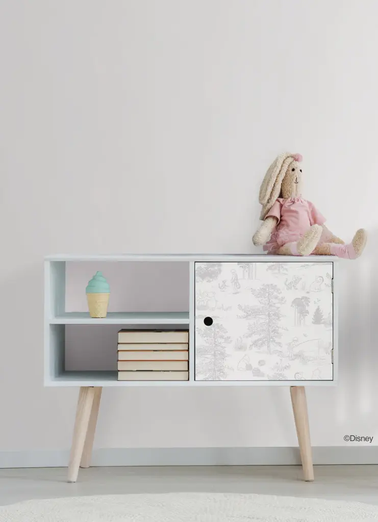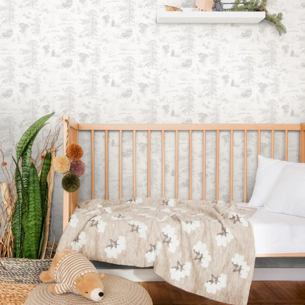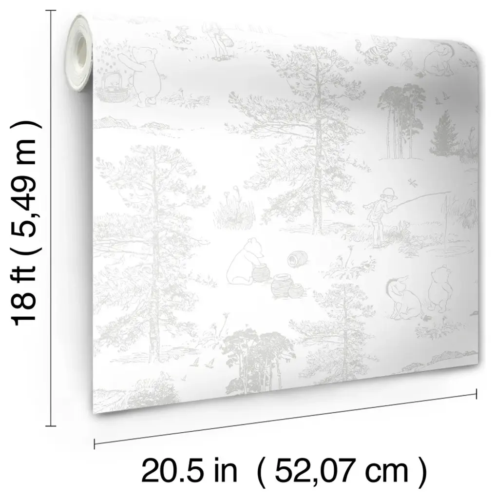 Bring the majesty of The Hundred Acre Wood to your space with this officially-licensed Disney Winnie the Pooh peel and stick wallpaper print. This soft and relaxing grey toile print features the classic characters Winnie the Pooh, Christopher Robin, Tigger, Eeyore, and Piglet in a forest of trees. Perfect for any nursery or playroom, this charming wallpaper installs in as little as Peel, Stick, Done! Grey Winnie The Pooh Toile Peel and Stick Wallpaper comes on one roll that measures 20.5 inches wide by 18 feet long. Officially-licensed Winnie The Pooh toile peel and stick wallpaper.; Peel and stick to apply, pull up to remove; Winnie the Pooh x RoomMates Peel and Stick Wallpaper is safe for walls and leaves no sticky residue behind; Easily repositionable while installing; Winnie the Pooh x RoomMates Peel and Stick Wallpaper sticks to any smooth, flat surface - perfect for DIY projects; Ideal for rental or home decorating;Comes on a 20.5-in x 18-ft roll and covers about 30.8 sq. ft;Design repeat of 20.5-in;This product should NOT be applied to textured walls - smooth clean, dry, painted surface only (no Non-Stick paint or soap residue).