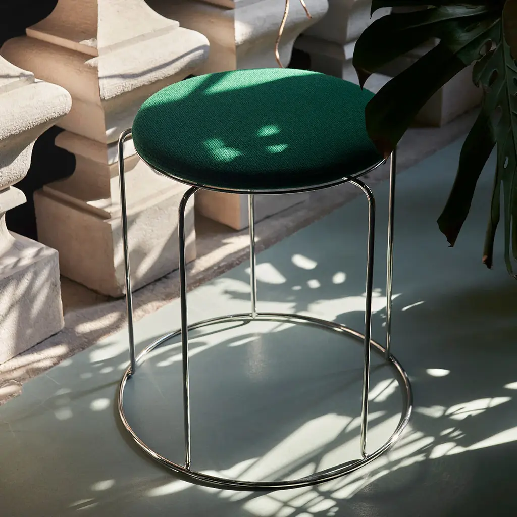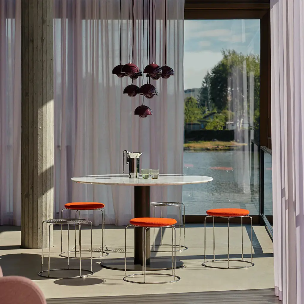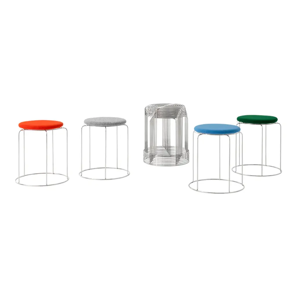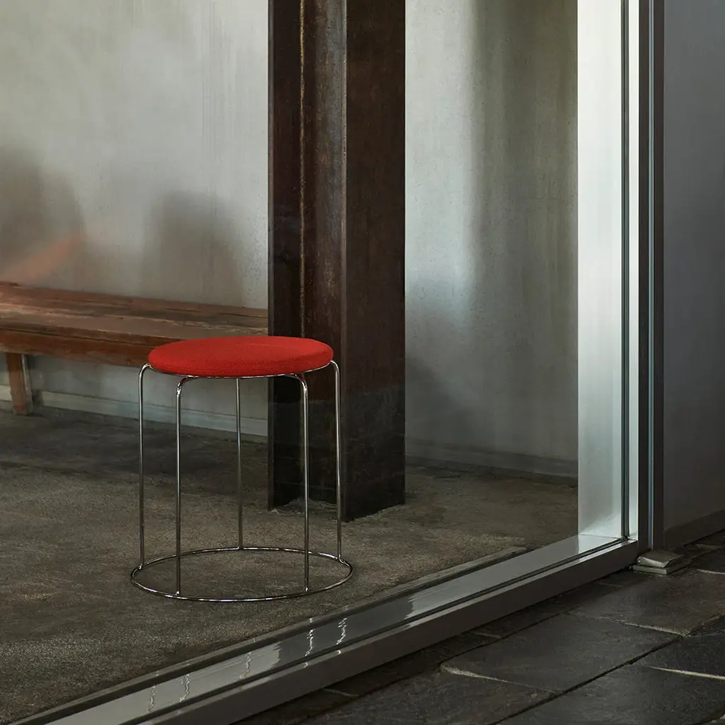 The Wire Stool is a 1981 design by Verner Panton. Verner Panton aspired to be a painter before studying architecture at the Royal Academy of Fine Arts in Copenhagen. After an apprenticeship with architect/designer Arne Jacobsen, Panton pursued a path in furniture and interior design. It was during this part of his career that he became famous for his avant-garde work, pushing the boundaries of design with innovative materials, bold colors, and unconventional forms that transformed contemporary interiors. In the 60's and 70's, his passion for designing entire environments led to immersive interiors featuring his hypnotic patterns and futuristic designs for furniture, lighting, wallpapers, posters and rugs. Panton's pioneering use of materials, colours and shapes earned him a reputation as a visionary.