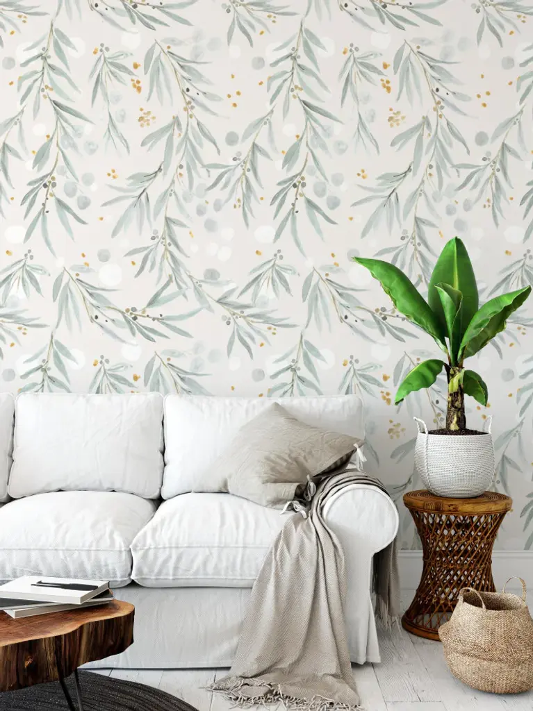 Wispy Leaves Gray Wallpaper, 24"x144"