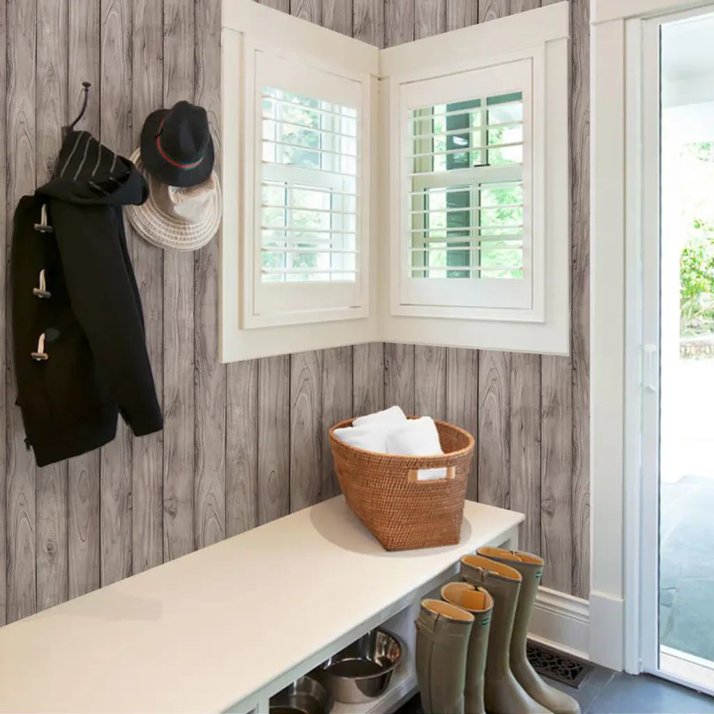Wood Peel And Stick Vinyl Wallpaper, Gray, 24"w X 108"h
