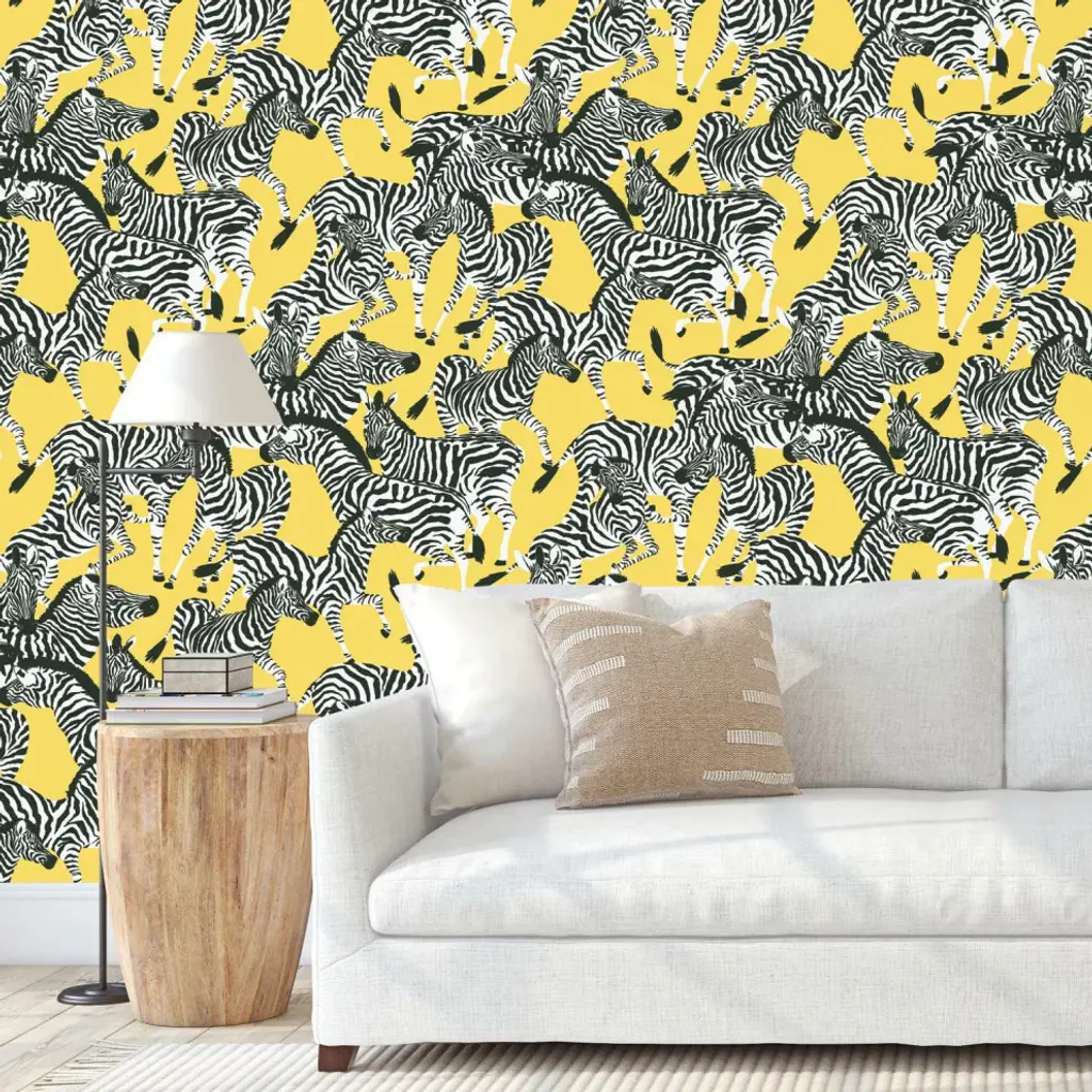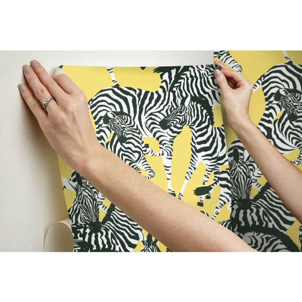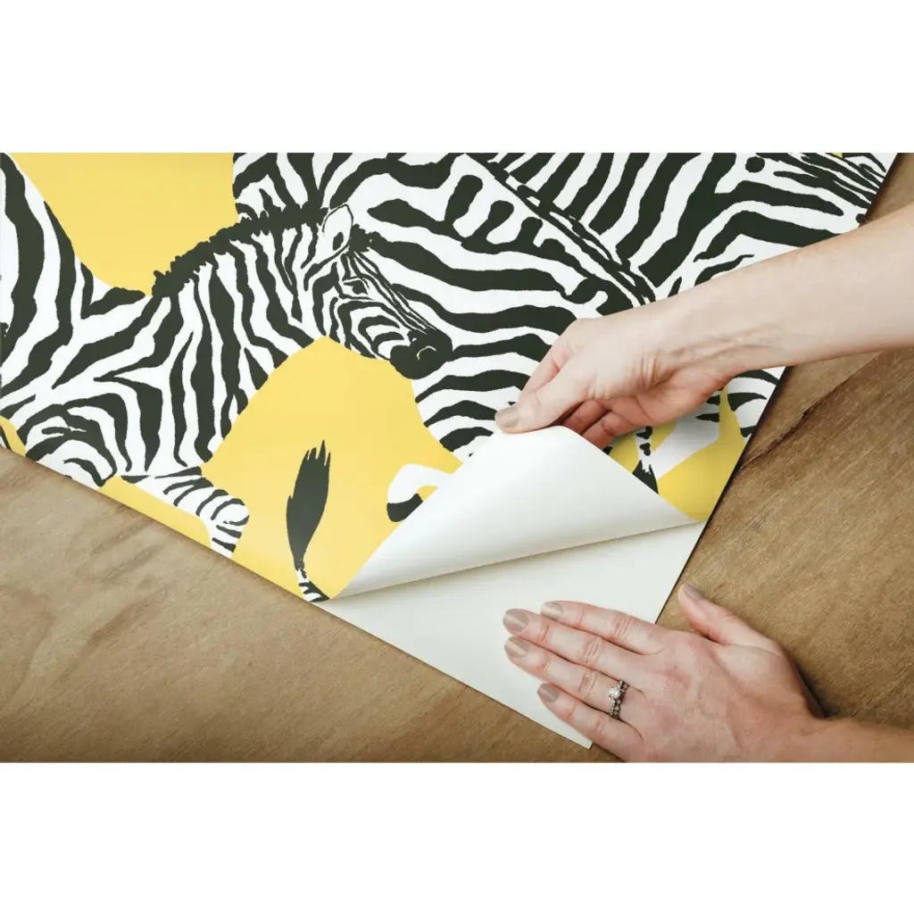 Apply the Herd Together Peel and Stick Wallpaper to add zebras to your walls. You will be fascinated with this lively orange and white pattern and your walls will love the extra life. Simply hang, smooth, and reposition if needed leaving no residue or damage to your walls behind. Our removable wallpaper is fast, fun, easy, and affordable. Roll size - 18 inches wide x 18.86 feet. Design has a Drop match with a 33.5 inch repeat. Covers 28.29 square feet.; Peel and stick to apply � no water, no paste, no mess; 100% removable peel and stick wallpaper.; No sticky residue left behind upon removal; Where to Apply - Our wallpaper adheres to any smooth, flat, and clean surface. Walls should be cleaned before use. Our products are not designed for textured walls.; Repositionable, washable, and strippable; Superior strength & properties to regular contact paper (thicker & leaves no sticky residue behind); Perfect for both renters and homeowners.