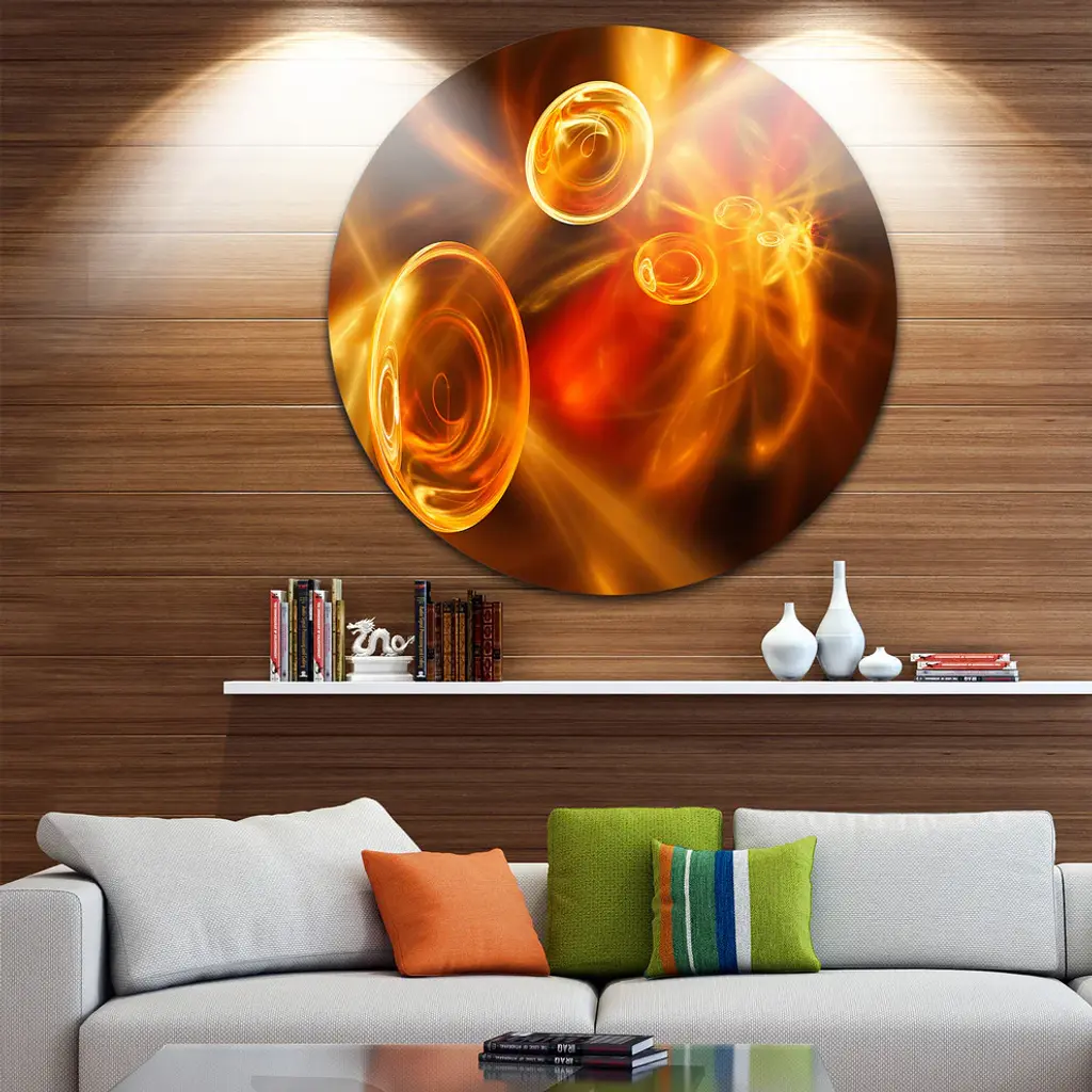 Bring Contemporary Abstraction to your home with this large Circle Metal wall art. This Yellow Fractal Desktop Wallpaper Metal Artwork makes it the focal point of any room or office. - White Gloss Coating ensures colors are extra vibrant with light reflection.- Aluminum grade Sheet Metal with 1 inch mounting frame on the back giving the illusion that the artwork is floating on the wall..- Mounting Brackets are included along with instructions.- High Quality Digital images are created directly into a glossy aluminum panel producing a stunning and captivating print into the glossy finish of the metal.- Water, Fire and Scratch resistant HD Aluminum panels.- Looks better than any photo paper and guaranteed to last at least 20 years- Easy to clean with a microfiber cloth. Colors are far superior to regular Canvas Art. - Easy to Hang