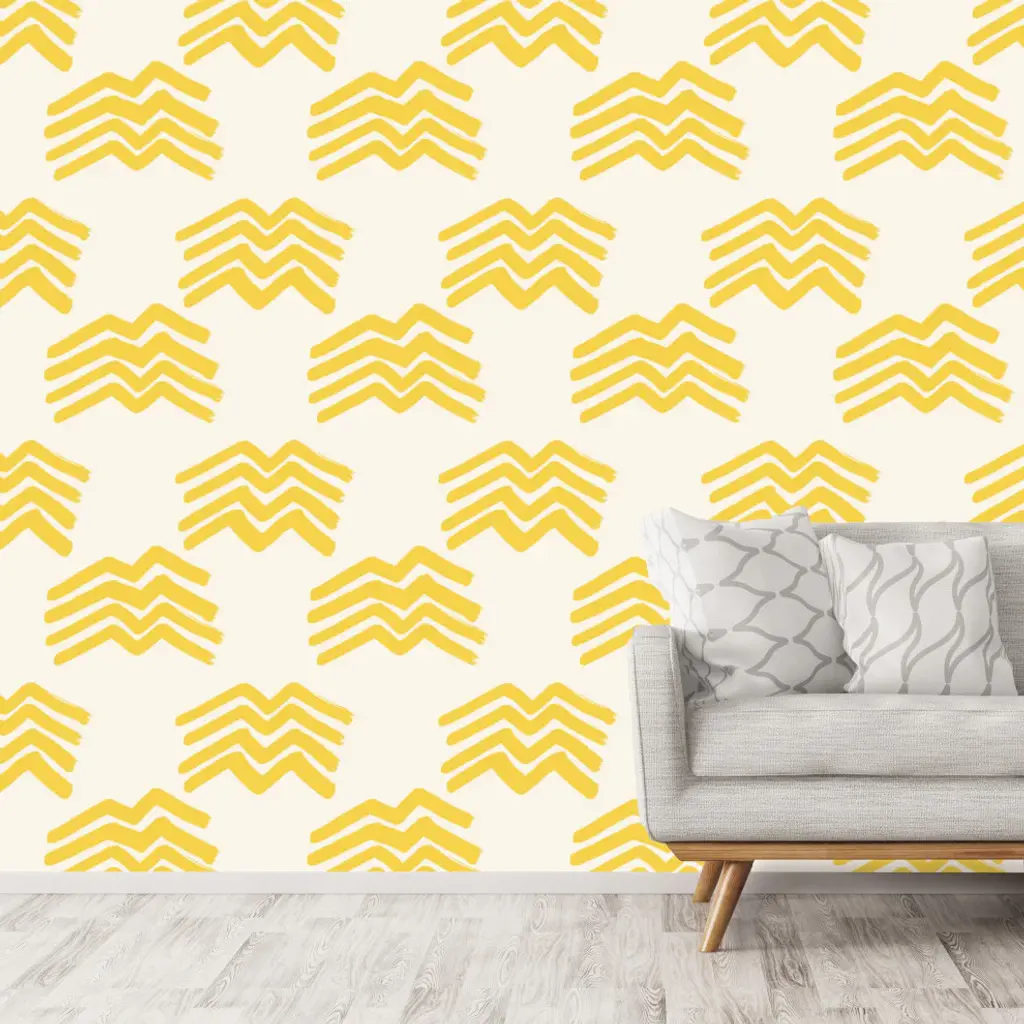 Eco-friendly wallpaper made of 100% ecological paper, painted with vegan water-based inks, and free of chemicals. Designed and printed in Italy, it's easy to apply and remove with hot water. Featuring a vintage-inspired chevron pattern in soft yellow and white,the design is perfect for Boho decor or modern interiors. Each pack includes 8 sheets. Each sheet measures 27.5x39.4 inches/70x100 cm, covering a total area of 5 MQ.