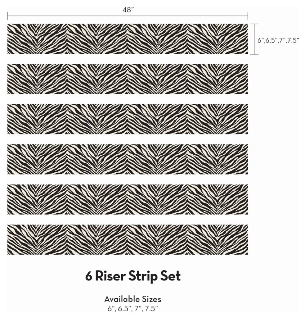 Zebra Print Peel And Stick Stair Riser Strips, Black, 48"w X 6"h, 6 Pack