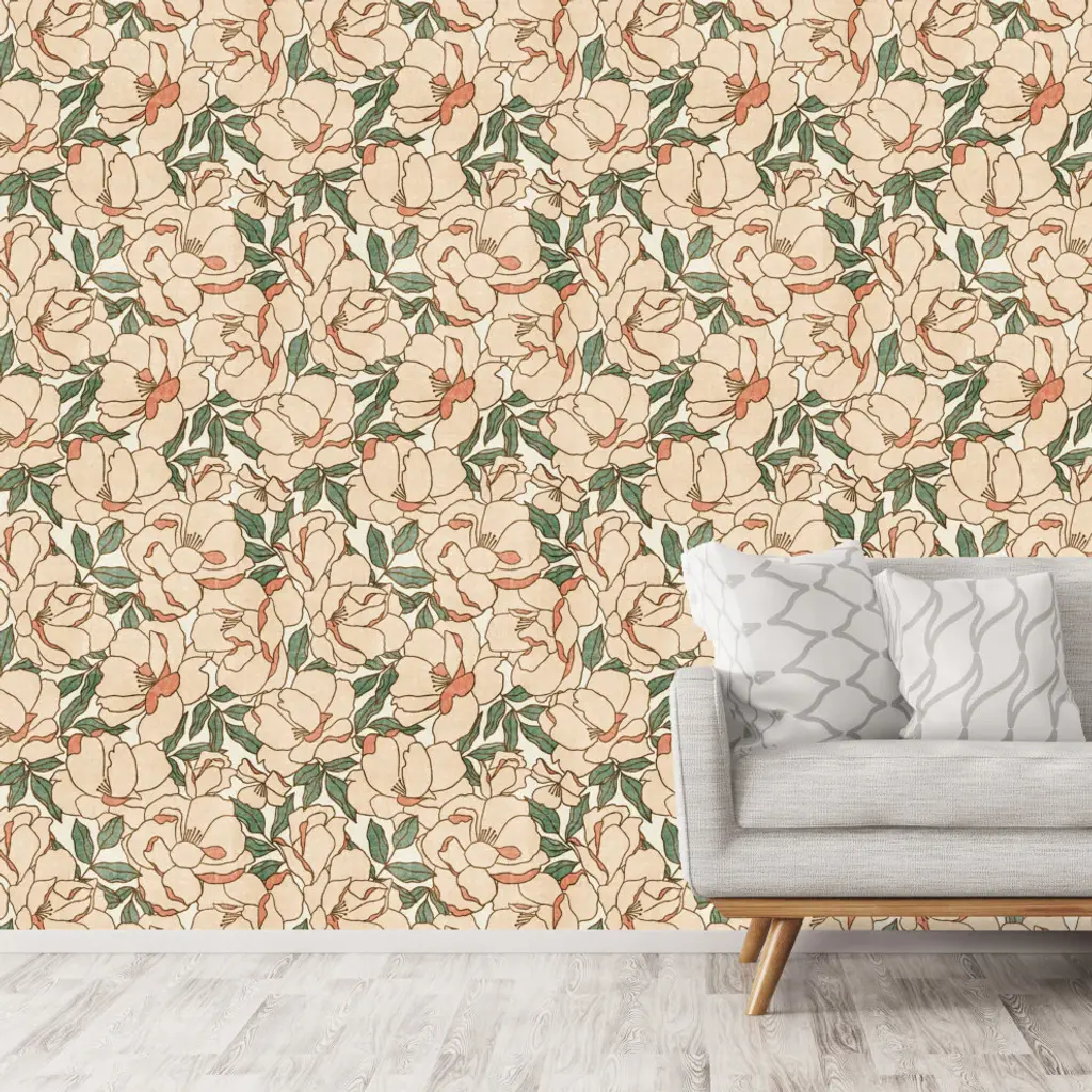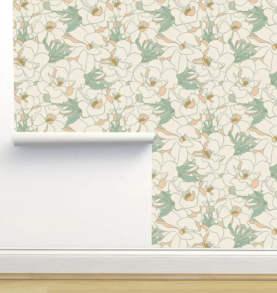 Each roll of wallpaper is custom printed to order and has a fixed width that covers 24 inches of wall space. Peel & Stick Fabric Wallpaper - Removable and Repositionable! Limitless Walls Fabric Peel and Stick wallpaper is a woven polyester fabric with an adhesive backing. Limitless Walls fabric is not like everyone else"™s, ours is the thickest most durable and easiest to install. You won"™t be able to find this anywhere else since we make it ourselves!• 100% opaque white polyester woven with adhesive backing• Eco-friendly and formaldehyde-, phthalate-, and PVC-free• To install, simply peel and stick• Easily removable and repositionable IMPORTANT NOTE Our wallpapers are not recommended for application over paints advertised as being stain-resistant or washable. These paints are crafted to prevent things from sticking -- including wallpaper. If in doubt, you can use Zinsser Gardz which is a clear primer that you can apply right over your current paint. If your wall has been recently painted, allow at least 2+ weeks for the paint to cure before applying wallpaper. Applying wallpaper over uncured paint can lead to bubbling. Our wallpaper will not stick to cement or textured walls.We highly recommend ordering a test swatch before committing to full rolls. While we have done our best to accurately represent the color and scale of this design, computer monitors aren''t the best way to determine how a printed color will look in person. It''s possible that the finished product may be slightly different than it appears in the preview. It is also important to test the adhesive on your unique surface.CARE INSTRUCTIONS:Gently wipe down with a damp cloth, soft cleaners such as dish soap can be used. The use of heavy cleaners or heavy rubbing can cause color to lift.Original Design by Amy MacCready.