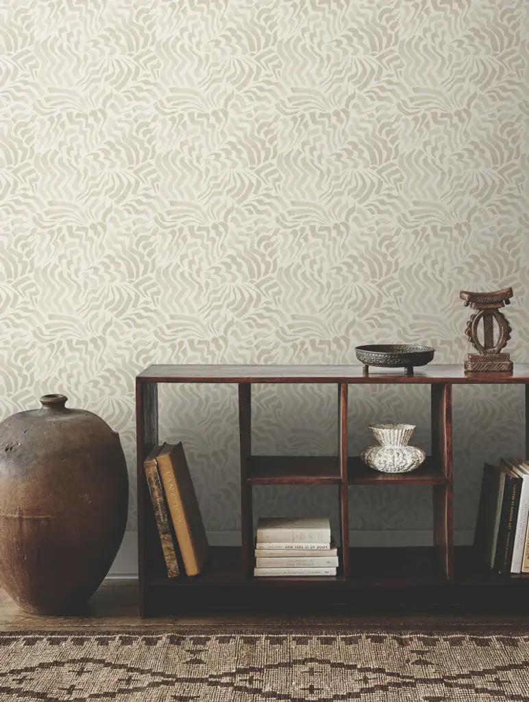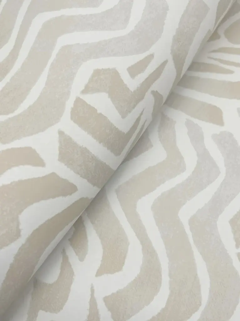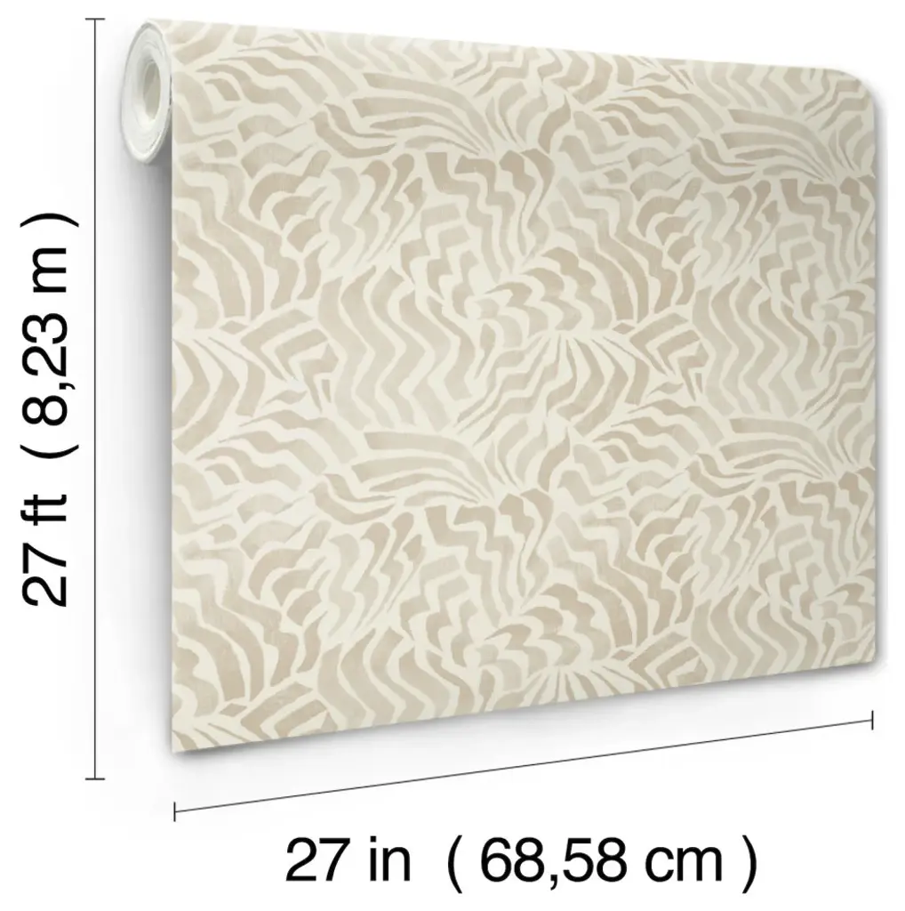 Artistic brushstrokes interpret waves in motion that crash and swirl from the central wellsprings of Zora Waves, shown in taupe brown on creamy white. This Zora Wave Wallpaper measures approximately 27 inches wide by 27 feet long, measuring approximately 60.8 square feet per roll. A retrospective from the private collections of Christiane Lemieux featuring global, artistic, and handcrafted designs. Unpasted non woven material; 25.25-in repeat, straight match; Washable and strippable; 27-in by 27-ft long roll; Covers about 60.8 square feet