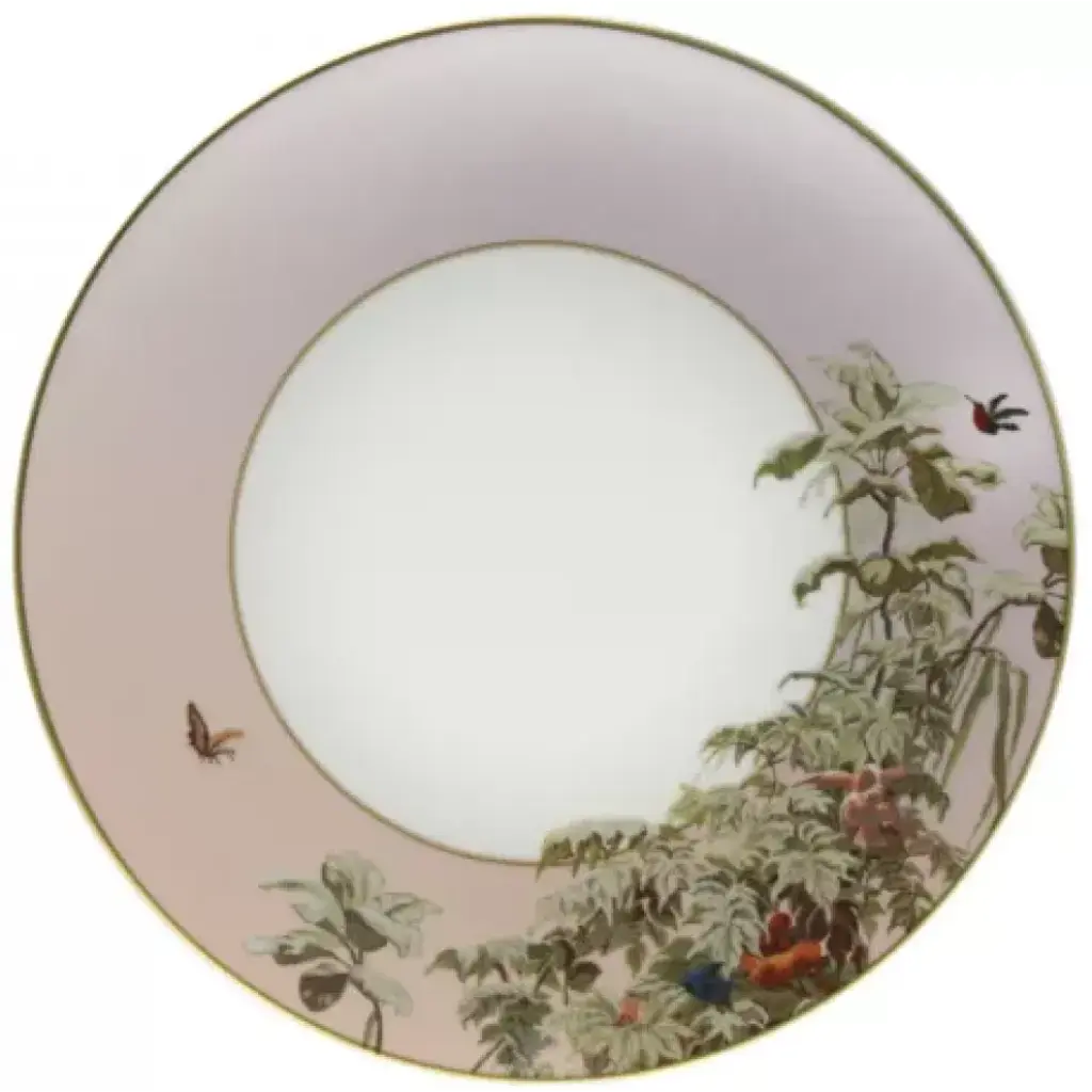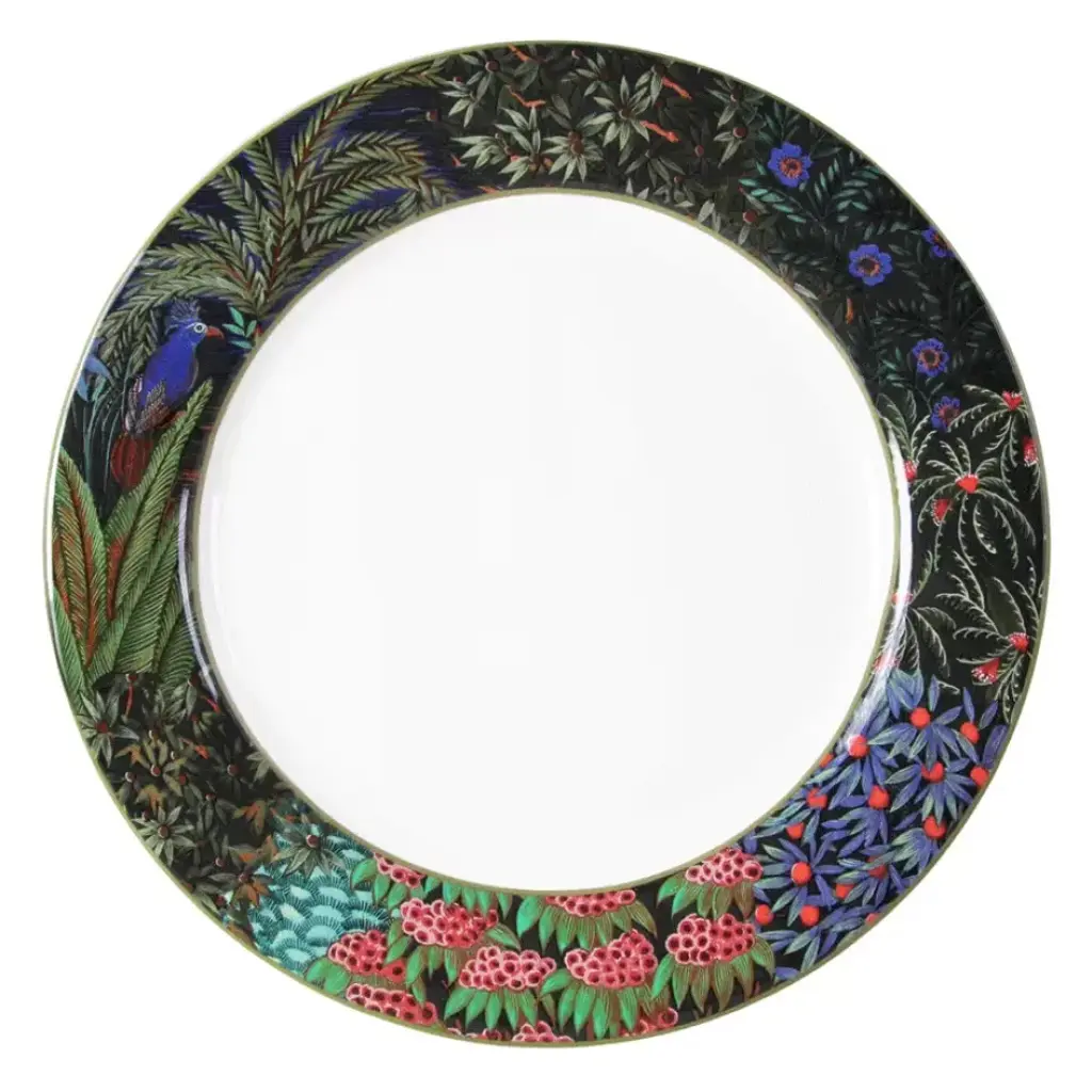 An exquisite collaboration between Haviland and scenic wallpaper specialist Zuber, this is a reproduction of Zuber's famous Les Vues du Brésil (1829) collection. Originally printed in 247 colors from 1693 blocks, Bresil is among Zuber's most complex and extravagant creations. Made in France from Limoges porcelain. Haviland Porcelain was founded by David Haviland, an American who moved from New York to France after he was brought a broken tea cup to match and recognized the quality and color of the old piece of porcelain. Filled with curiosity, he went to France to find the factory where the cup had been made, but the samples he was sent were not up to his standards. So in 1841, he moved to Limoges to set up his own factory. Traditional French dinnerware was usually produced in Limoges and sent to Paris for decoration. Haviland insisted on setting up a studio within his factory to have more control over the designs. Renowned artists, including Cocteau, Dali, and Kandinsky have played a role in the company's designs. Today, Haviland is one of the premier names in French porcelain dinnerware, sought by collectors all over the world. Clients have included the White House, Empress Eugenie, General de Gaulle, Jacques Chirac, the Emperor of Japan, and the Royal Court of Morocco.