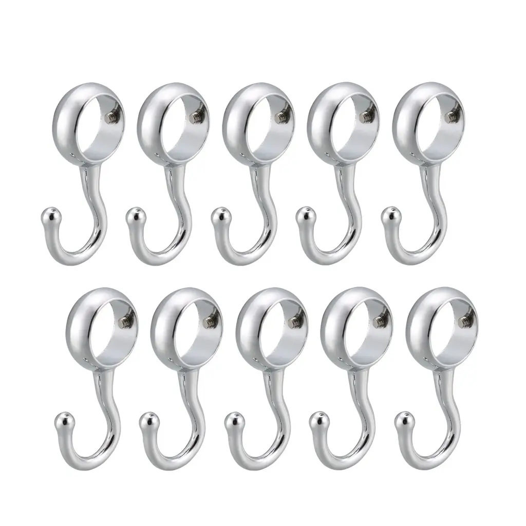 10pcs Wardrobe Bathroom 25mm Dia Tube Rod Handbag Clothes Coat Hooks Hangers - Silver Tone - Silver Tone