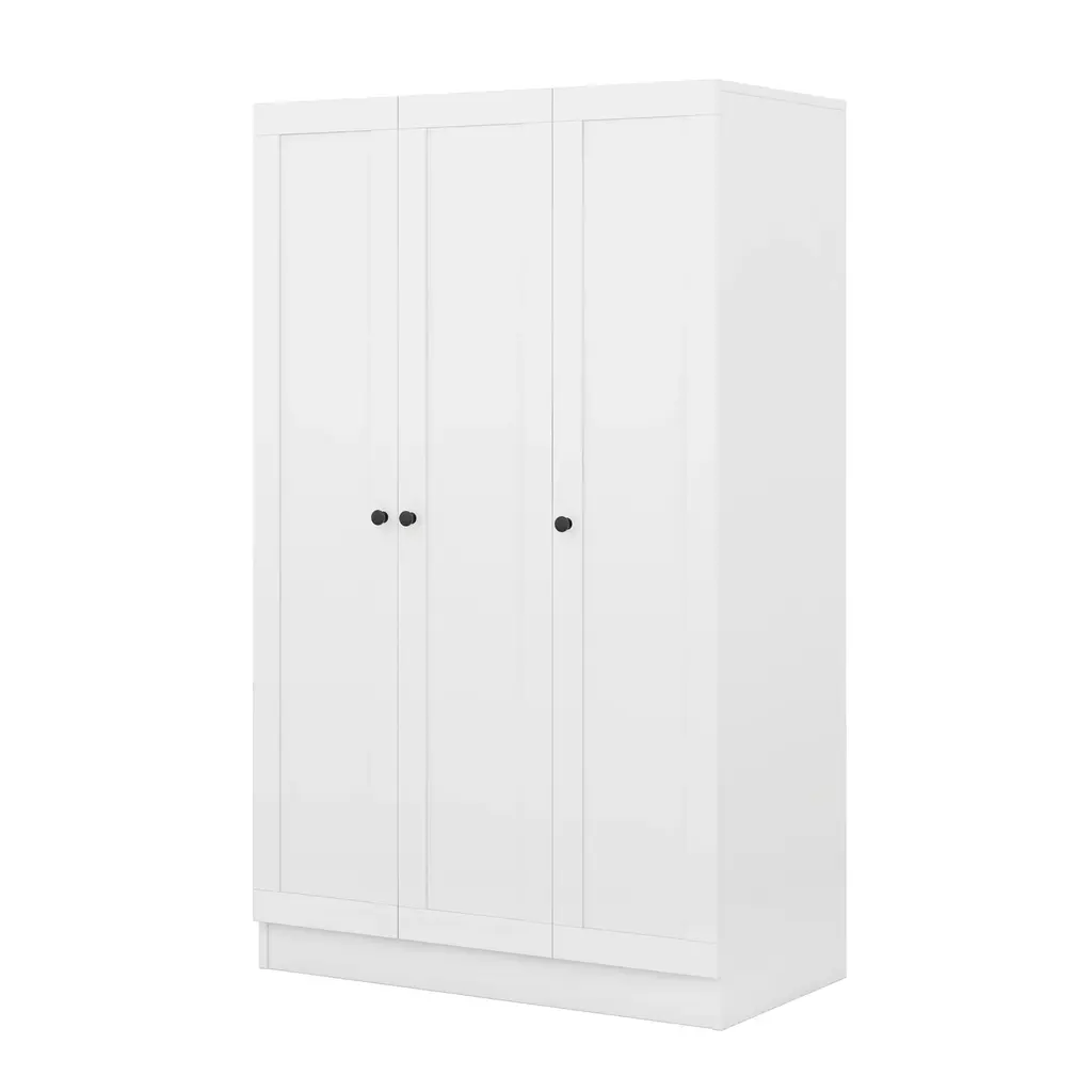 [Modern Clean design] Eliminating excess mess gives you more physical and mental space to dream up a room that's uniquely your own.This wardrobe features a clean, strong silhouette that can anchor a room with ease. White will match most modern room decor themes according to most interior designers. [Ideal Choice] This wardrobe is ideal for bedroom use, offering a huge amount of storage space. [Storage Space Maximization] The storage combination provided on this free-standing wardrobe will allow the user to maximise and organise all items without having to compromise on the look of their bedroom. [High Quality] Long modern black handles add quality to this wonderful wardrobe. Crafted with high-quality MDF, this wardrobe will last for years and years to come. [Dimension] 41.4"L x 21.2"W x 66.9"H. Larger than most 3-door wardrobes yet small enough to fit into small bedrooms! This item is a flat pack, some assembly is required, although we have provided clear instructions and tools.