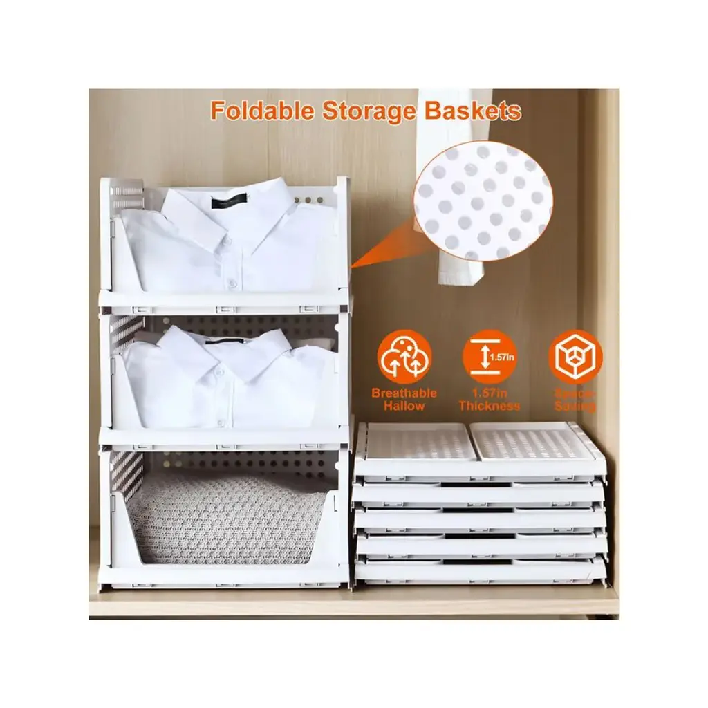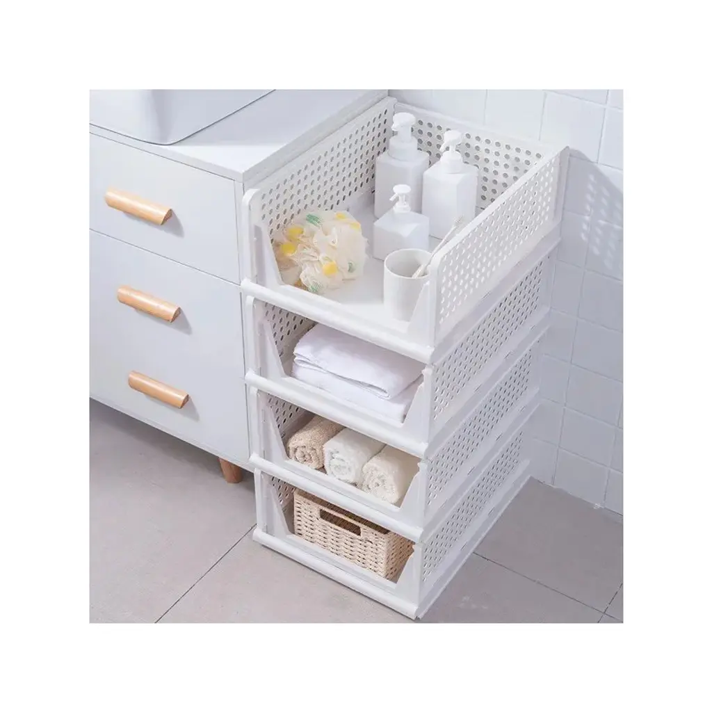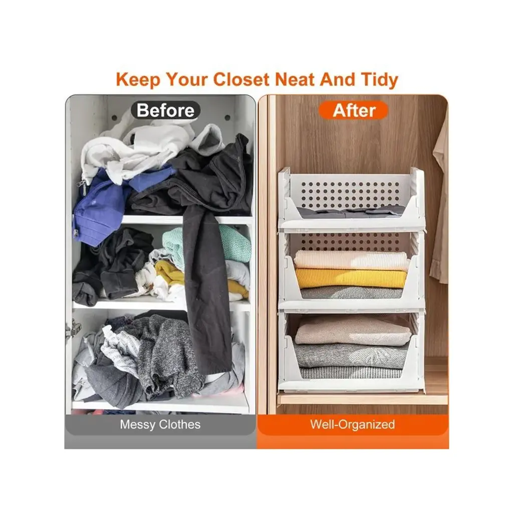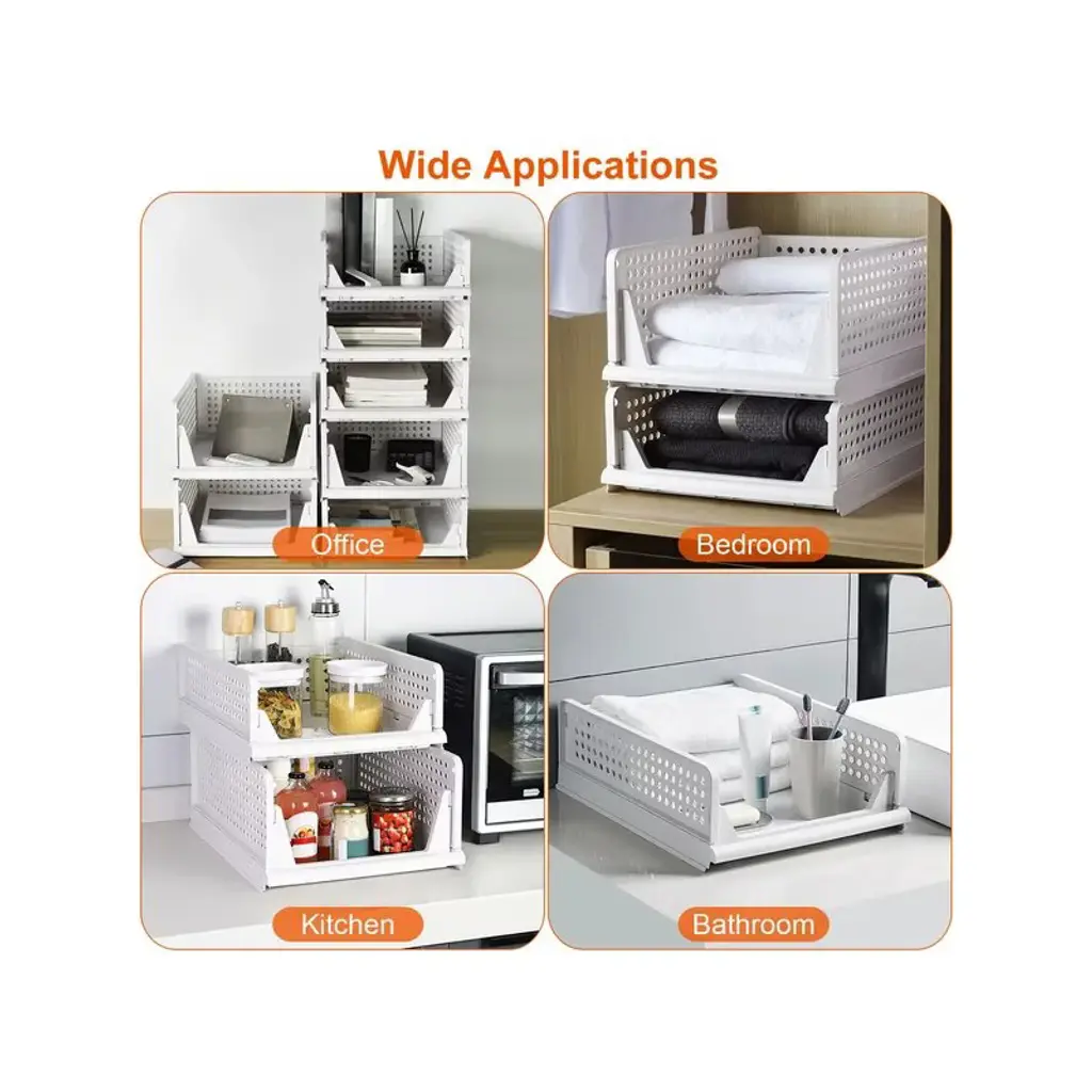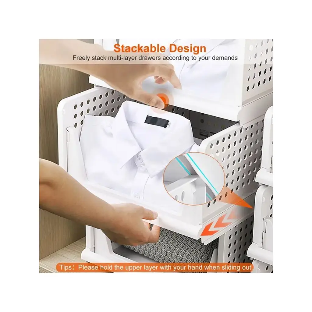 4 Packs Plastic Storage Box Closet Organizer Foldable Storage Bin Stackable Drawer W/ Slide Rail Push-pull Storage Basket For Living Room Wardrobe