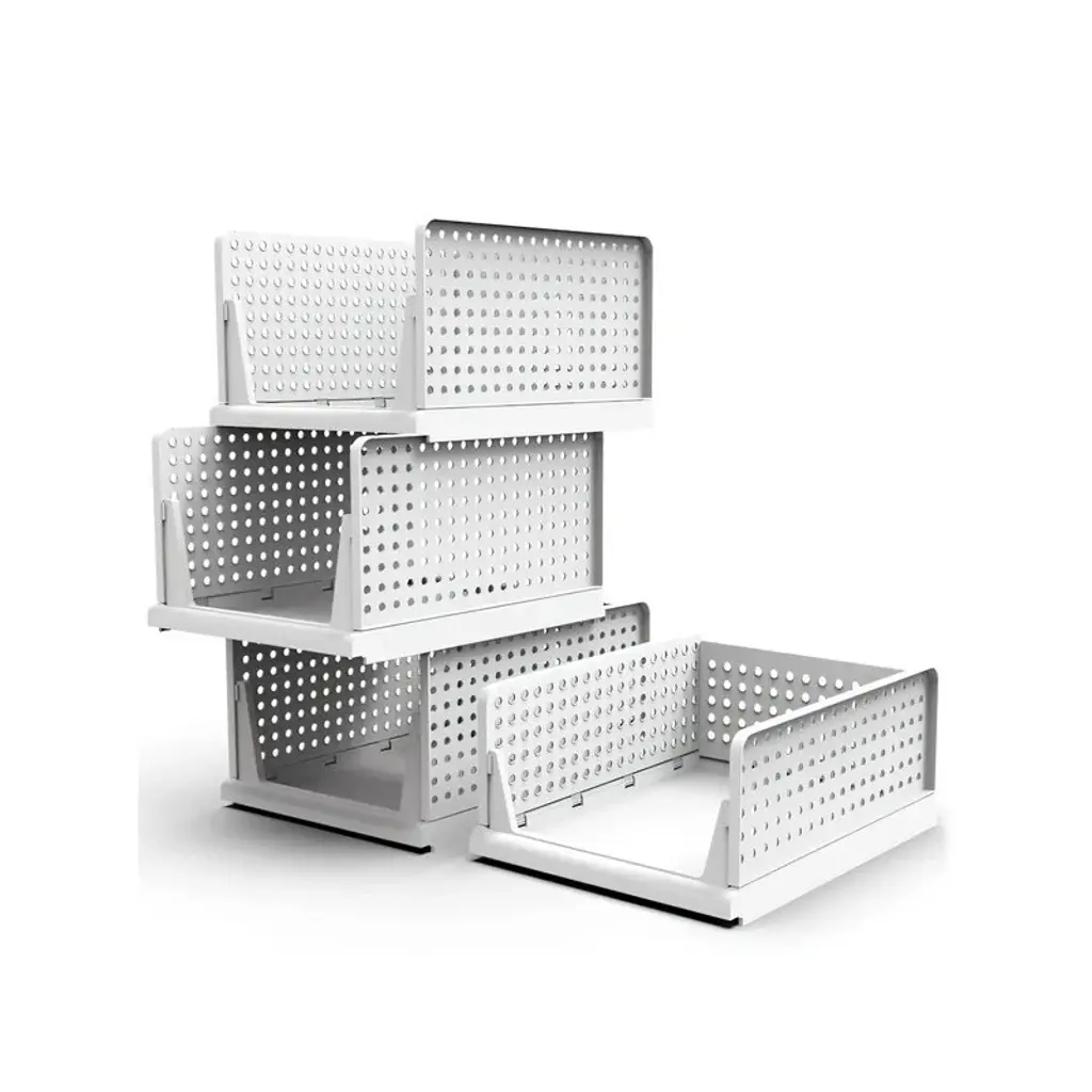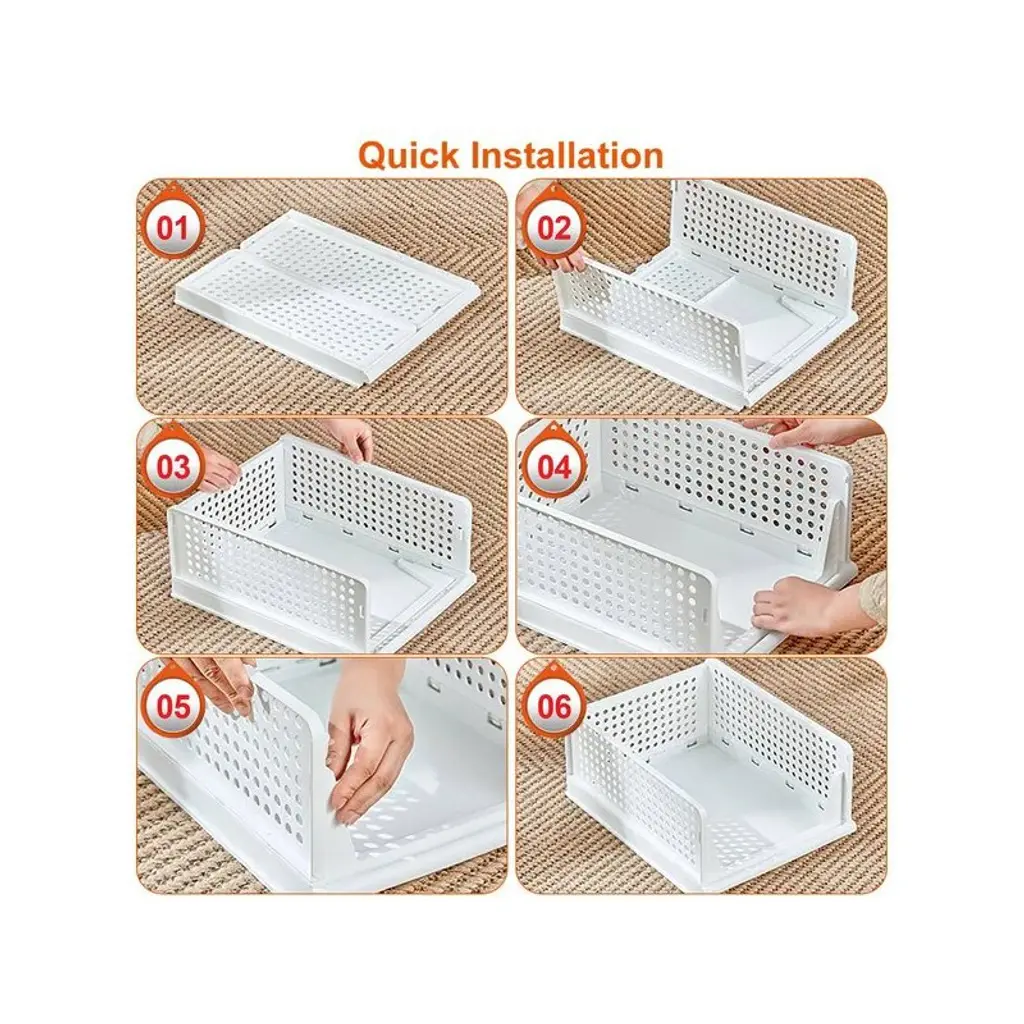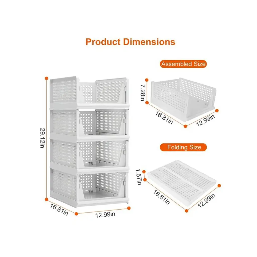 *Specifications*:? Product Type: Foldable Storage BoxMaterial: PlasticColor: WhitePer Item Size(Folded):33x42.7x4cm/12.99x16.81x1.57inPer Item Size(Assemble):33x42.7x18.5cm/12.99x16.81x7.28inPer Item Weight: 683g/1.5lbsPackage Size:45x35x16cm/17.71x13.77x6.29inPackage Weight: 3.3kg/7.27lbs*Package Lists*:4x Storage Boxes4 packs of storage bins with classic white color, perfectly match diverse style in your house.Freely stack multi-layer drawers according to your personal storage demandsInstantly assemble or disassemble these foldable closet organizers within 1 minutesMade of premium thickened plastic material, non-toxic, odorless and anti-scratch.Our utility organizers are suitable to store different kinds of items, like your shoes, clothes, toys, snacks, seasoning bottles, shampoo, etc..