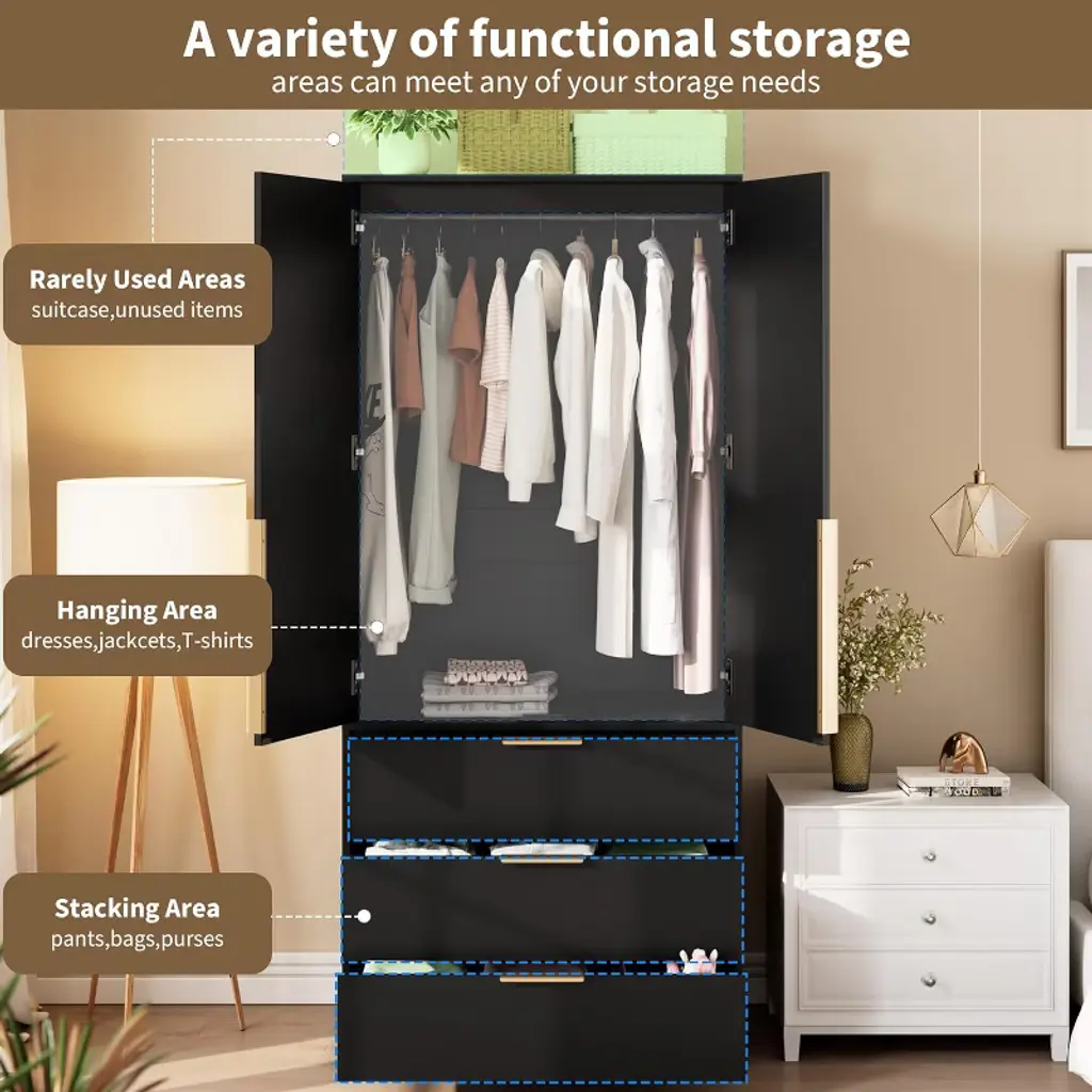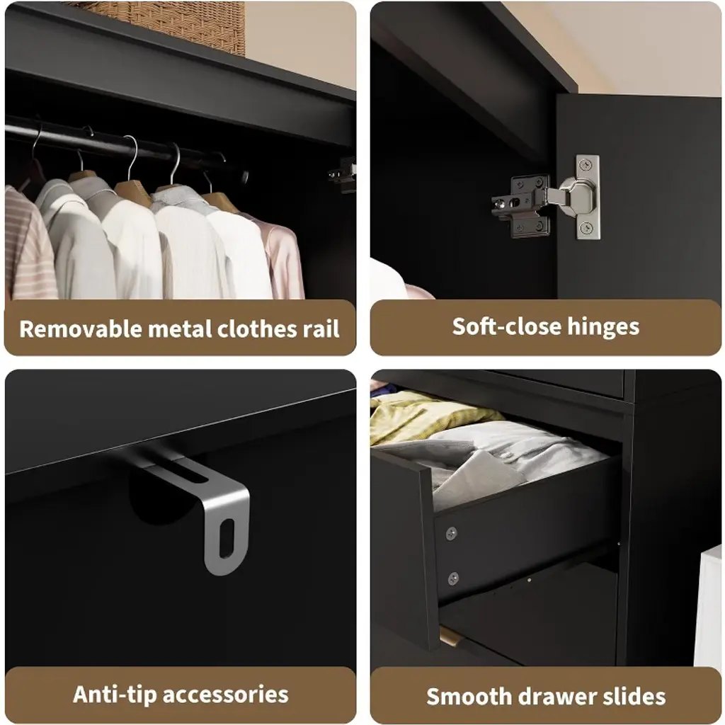 Designed with both a hanging rod and 3 spacious drawers, this wardrobe offers a perfect solution for organizing your clothes. Hang coats, dresses, or everyday wear up top, while the bottom drawers keep underwear, T-shirts, and seasonal items neatly tucked away.The clean, straight-line design makes it easy to align multiple units side by side for a custom storage solution. Whether you need just one or several, this wardrobe adapts to your space and storage needs seamlessly
