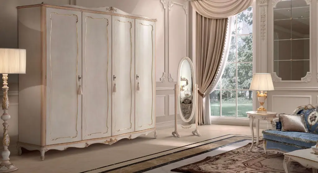Classic Hand made Wardrobe.The Melodia compact wardrobe likewise supports the preference for the collection’s continuous and flowing forms and was designed for smaller spaces. With the help of the beautifully bevelled mirrored doors and the sinuous embrace of the lateral golden columns, your room is illuminated with a warm and radiant shade. Shop All Arredoclassic Catalogs Furniture by Catalog