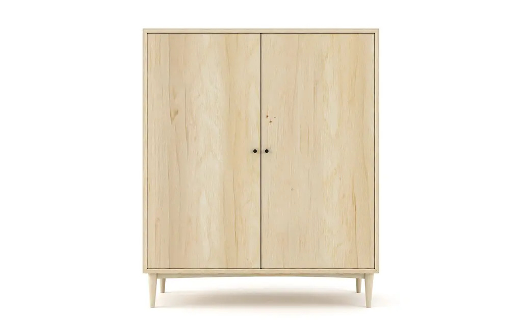 Add storage and polish to your bedroom or entryway with our Atten Armoir, crafted in your choice of FSC-certified Maple or Walnut. Expressions of craftsmanship like classic joinery and an arched base give even more beauty to its refined, modern build, with a nourishing, natural beeswax finish that gives the piece a subtle, matte glow. Cabinet interior features a garment-hanging bar and six soft-close drawers.Tops and sides crafted in your choice of beautiful, 100% solid hard White Maple, White Oak, American Walnut, or Black Stained White Oak. For additional strength and lightness, FSC-certified, low-VOC CARB 2 compliant Maple or Walnut hardwood plywood is used elsewhere.