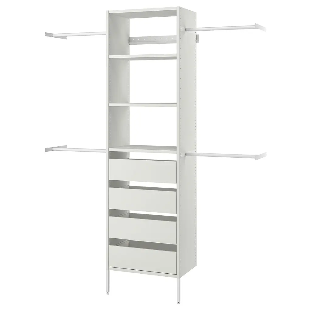 AURDAL Wardrobe combination - white 68 1/2-94 1/2x15 3/4x87 ". The long leg creates a beautiful look and is perfect if you have a high plinth at home. You can combine open and closed storage - shelves for your favorite things and drawers for the things you want to store away.