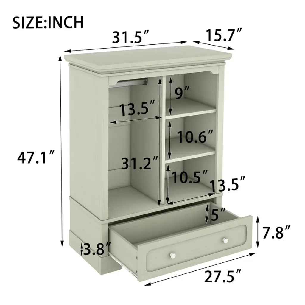 Bella Depot 31.5''w Open Children's Wardrobe With One Large Drawer-antique Green