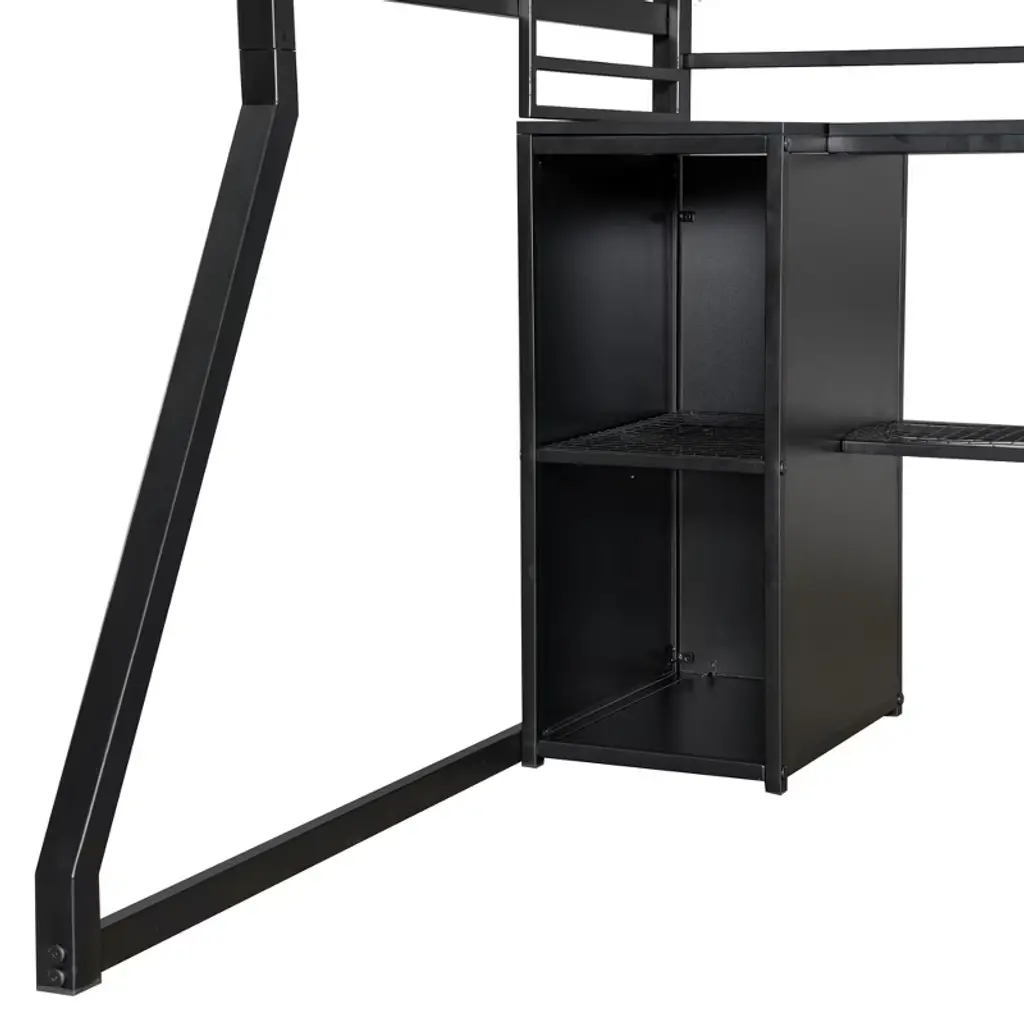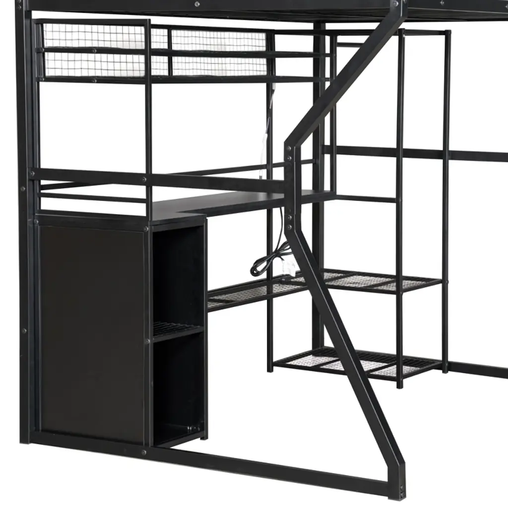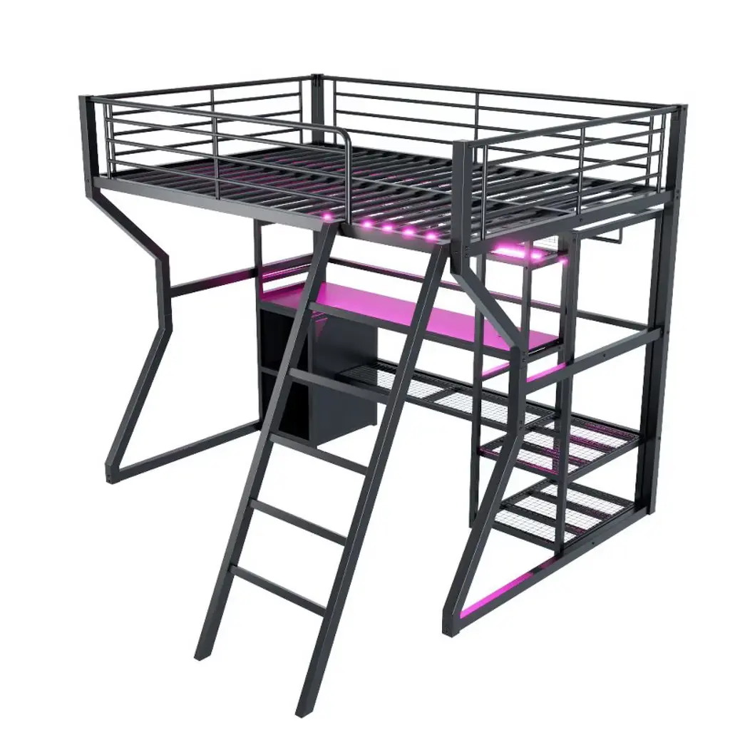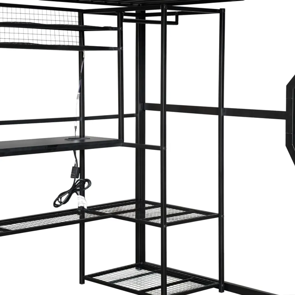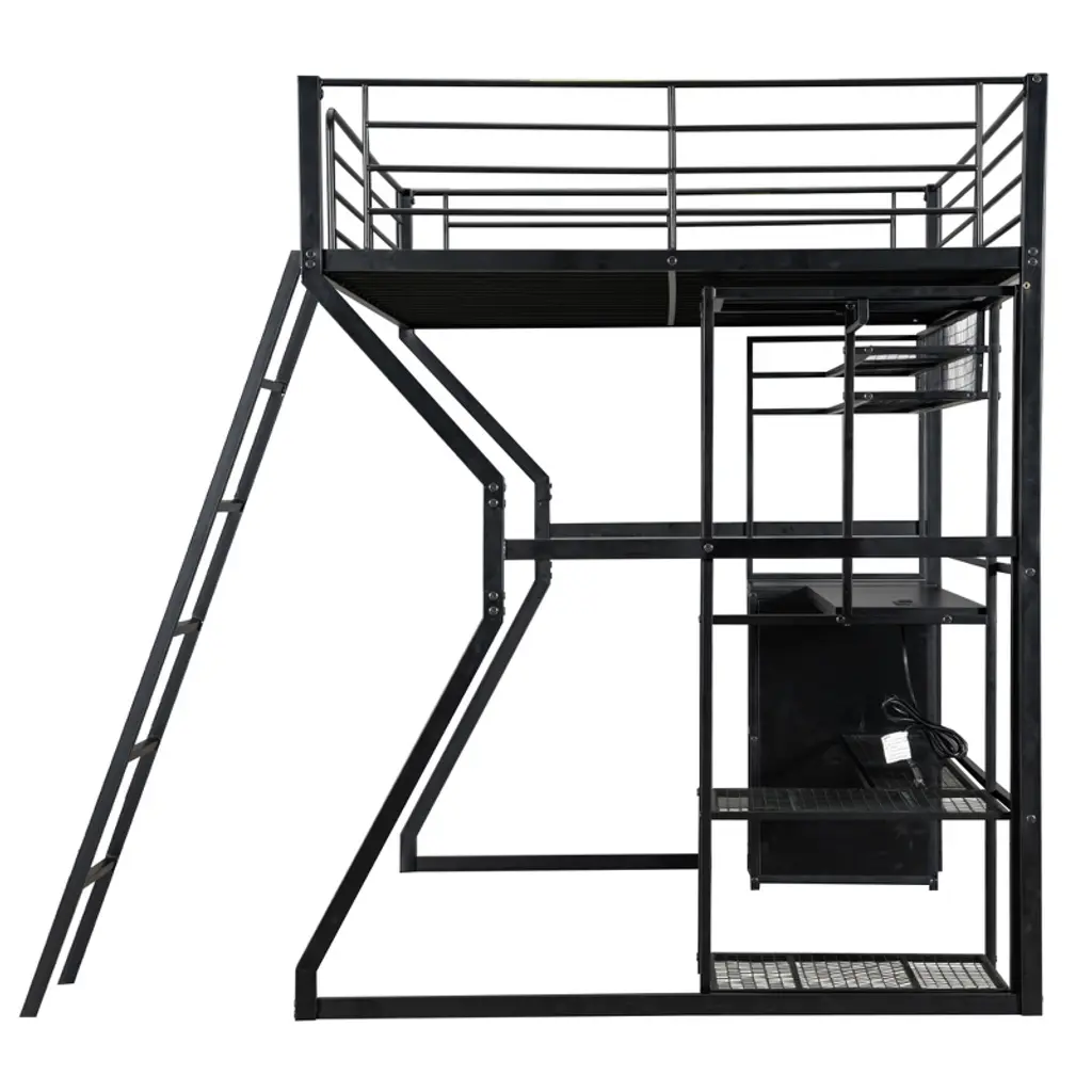 Bellemave Full Size Metal Gaming Loft Bed With Built-in Work Station, Open Wardrobe, Led And Multiple Storage, Black