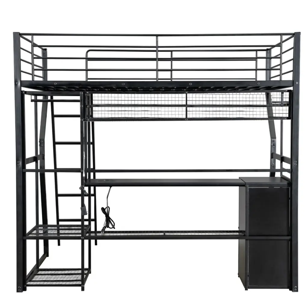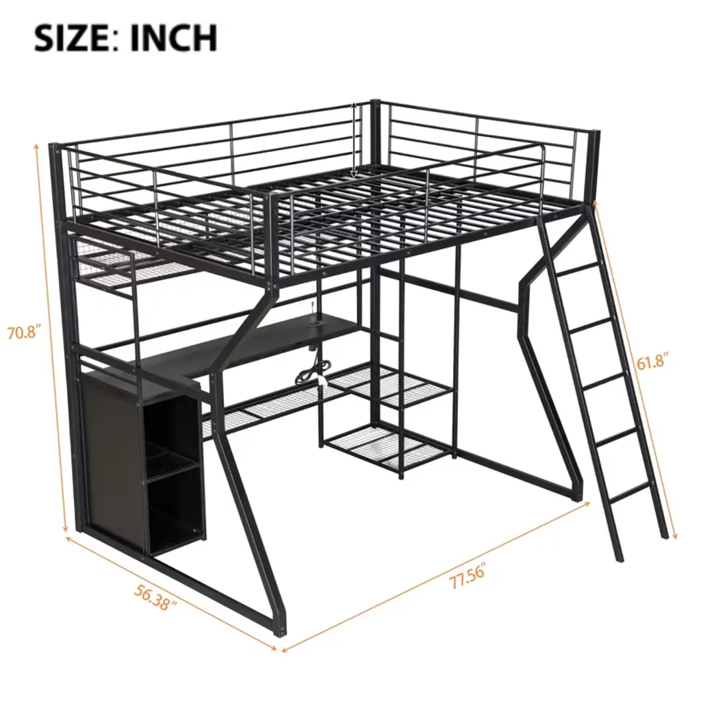 Full size loft bed with a desk is made of heavy-duty metal, rust resistant and durable. The upper layer can safely support up to 250lbs. Loft bed is equipped with a spacious and stable staircase to ensure safety of children going up and down. Full-size safety guardrail allows you to sleep peacefully without worrying about turning over or falling.This product will be delivered in two packages. It is possible that the two packages will not arrive simultaneously. Please waitpatiently.