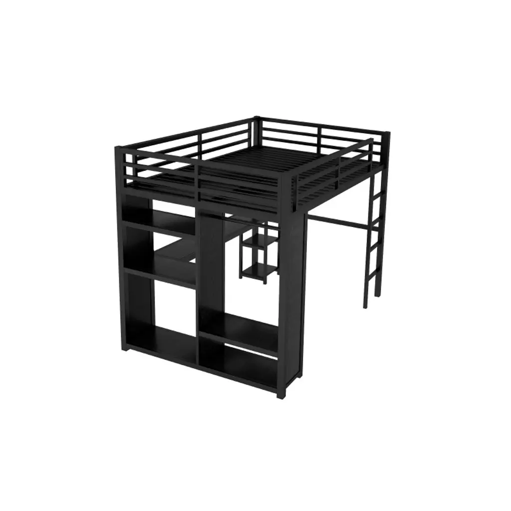 This queen bunk bed maximizes small room space with a built-in desk and a wardrobe beneath, allowing for a study area and storage for daily essentials. Whether you're a student, a professional, or just looking to maximize space, this queen over queen bunk bed design is ideal for adults and kids alike. Say goodbye to clutter and hello to an organized, functional bedroom!