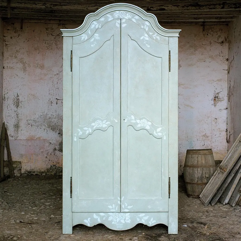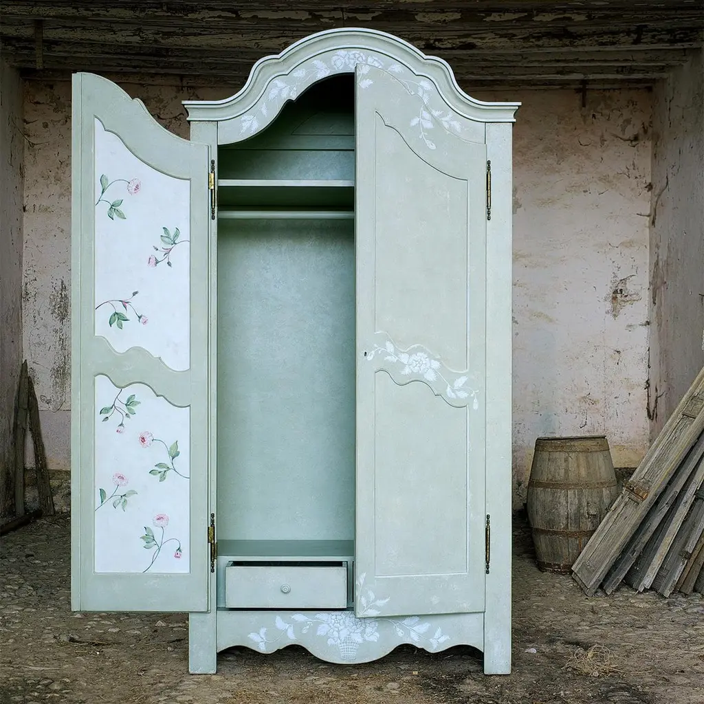 Introducing the Mantegna Armoire, a stunning piece that combines style and functionality. Hand-painted in blue with textural white flowers on the edges, it features contrasting white interiors adorned with colorful flowers. Inspired by the attention to detail of Venetian furniture makers, every aspect of this armoire is meticulously designed to provide moments of joy. Customization options for size and design are available. Please, ask the Concierge service for further information.