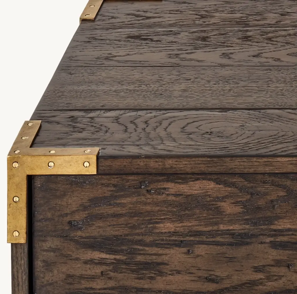European campaign furnishings of the 19th century inspired our collection by the Van Thiels, echoed in the simple strength of the shapes, the rustic grain of the solid American white oak and the hand-cast metal hardware with corner brackets that accent each piece. Subtle details including tapered legs and concealed hinges lend refinement to the clean, forthright silhouettes.SHOP THE ENTIRE COLLECTION