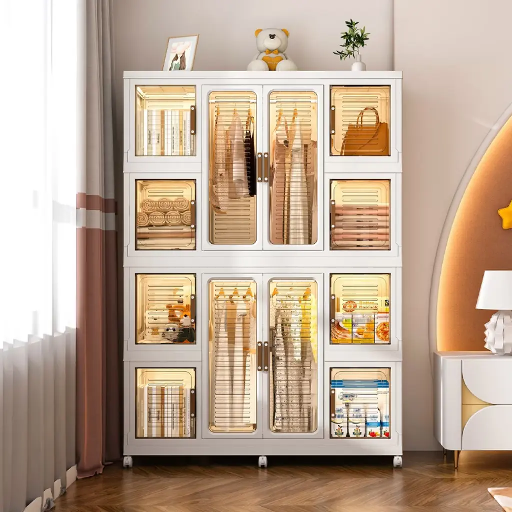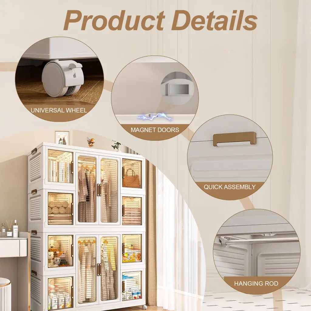 Keep your space organized with this versatile Portable Wardrobe Closet Storage Organizer. Featuring 12 magnetic doors and 12 cubes, it¡¯s perfect for storing kids¡¯ clothes, toys, and linens. Two hanging rods and 16 included hangers provide ample space for dresses and daily wear. Made of high-quality PP and ABS, it¡¯s durable and safe for everyday use. With its foldable design and quick assembly, this wardrobe is ideal for bedrooms, nurseries, dorms, or apartments, offering a smart, stylish storage solution wherever you need it.