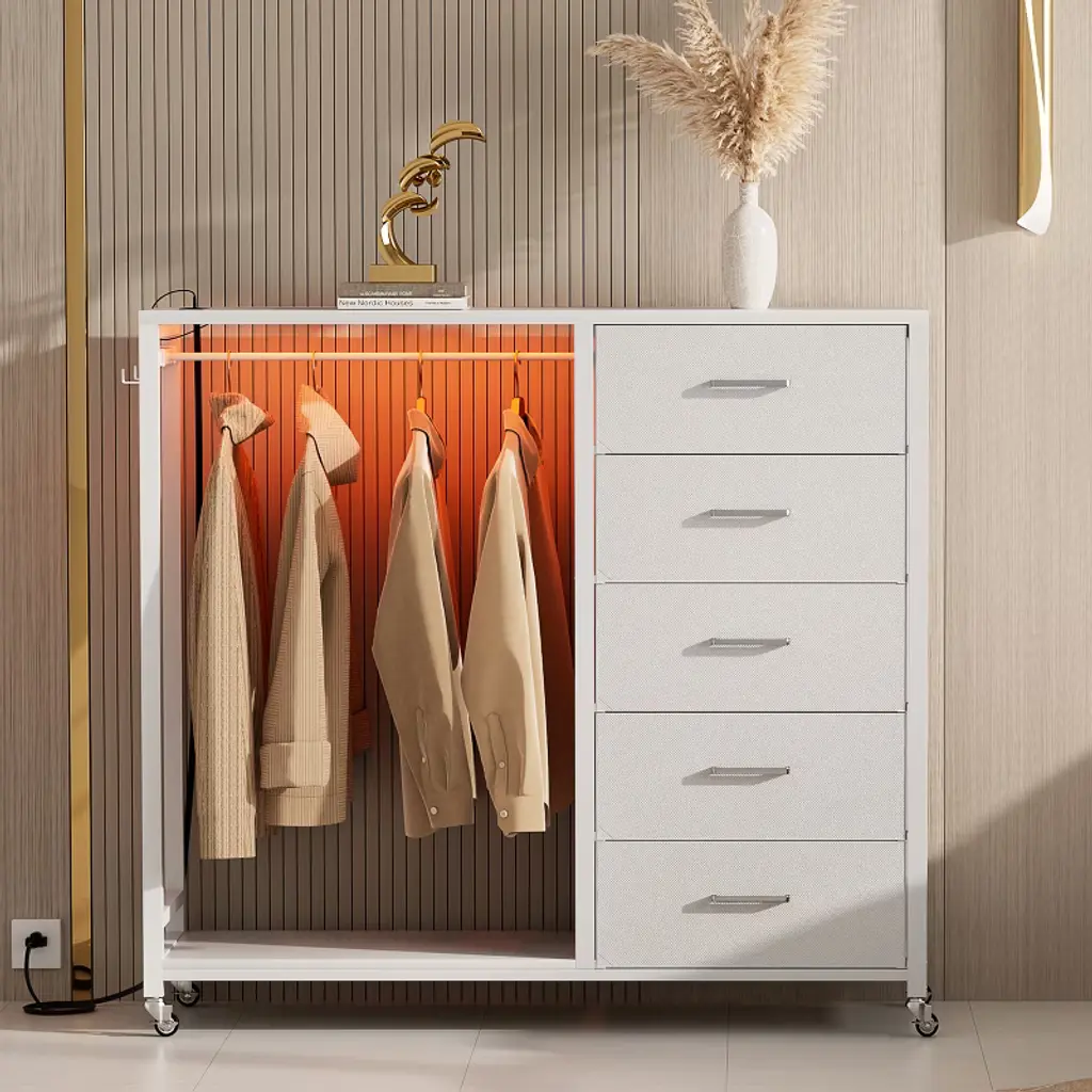 Clihome Portable Wardrobe Closet Storage Organizer For Clothes Dresser, Storage Cabinet With 12 Magnetic Doors -12 Cubes & 2 Hanging Rod