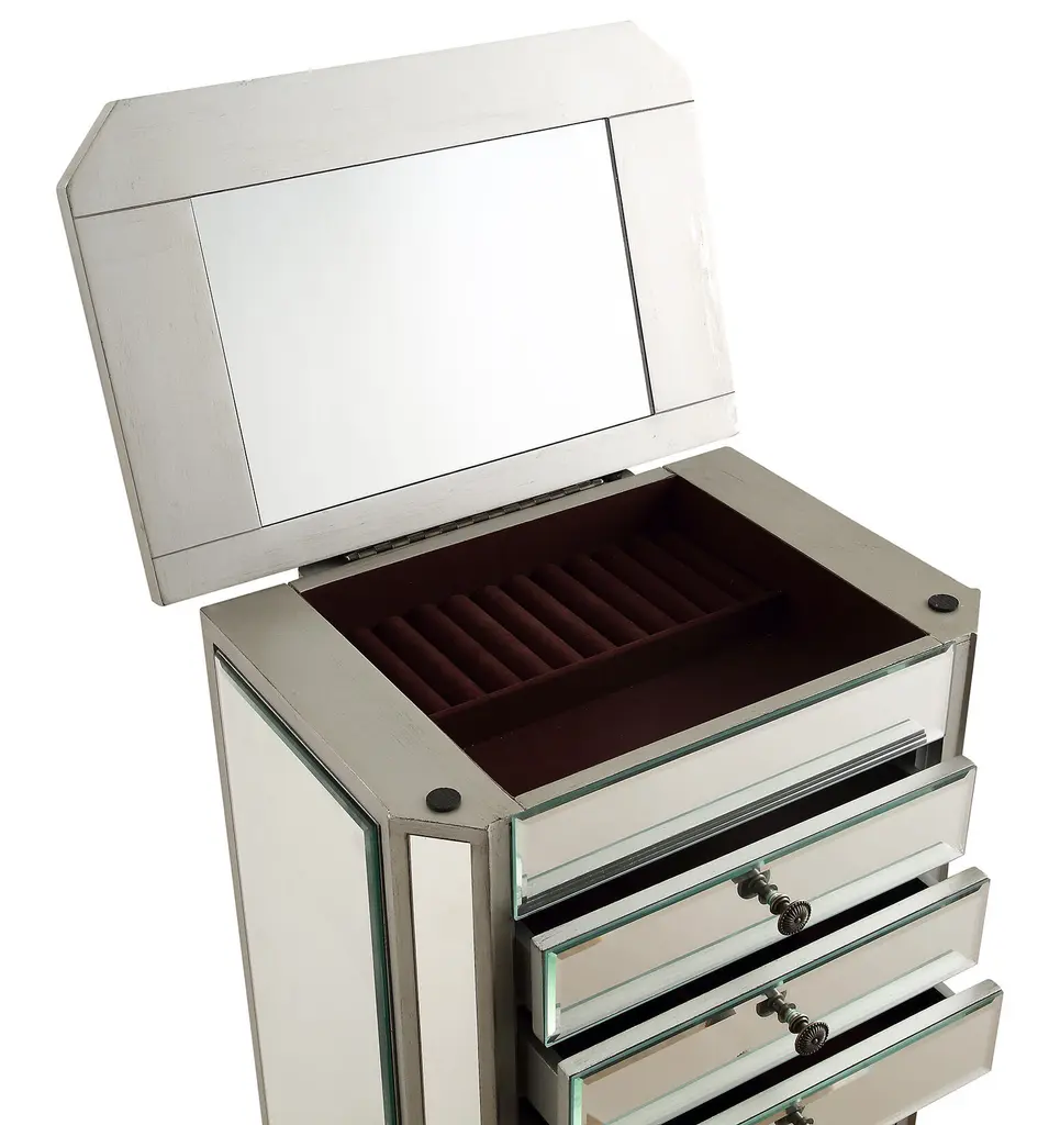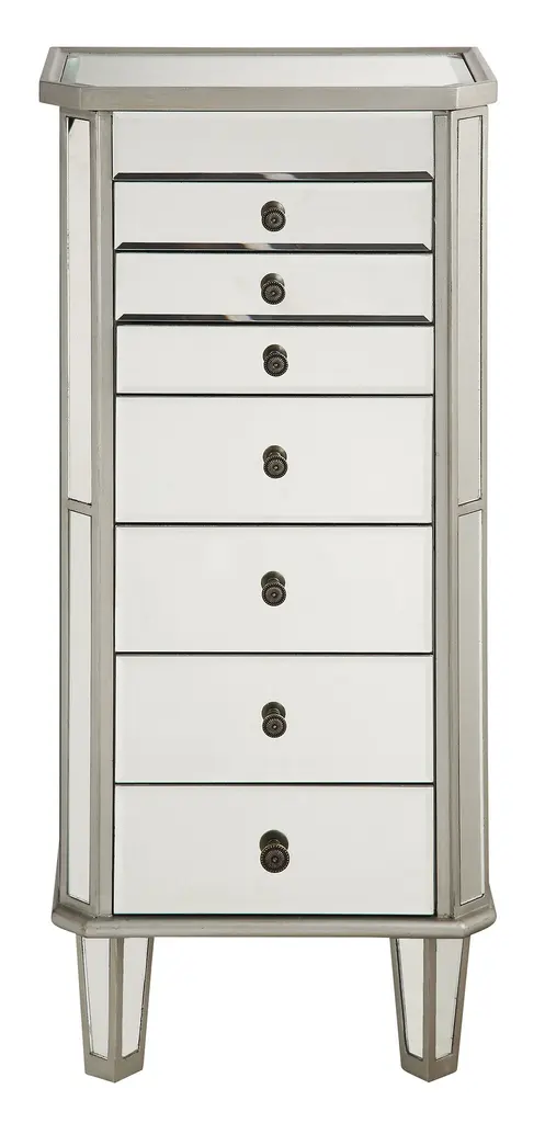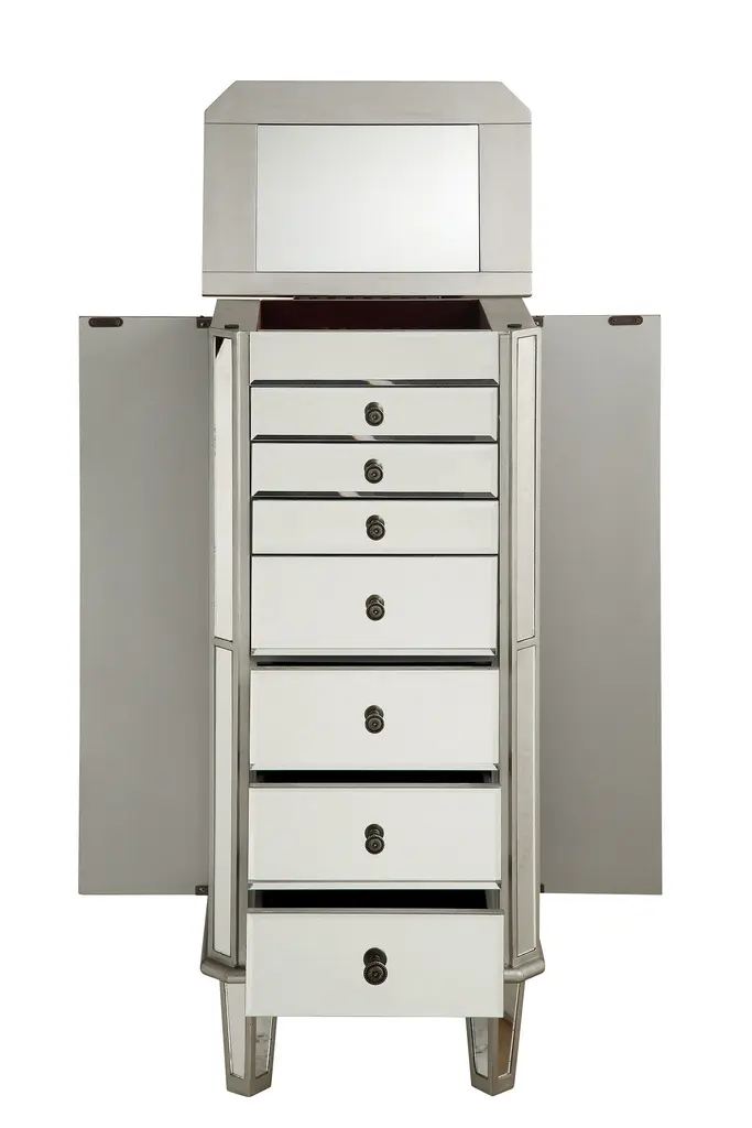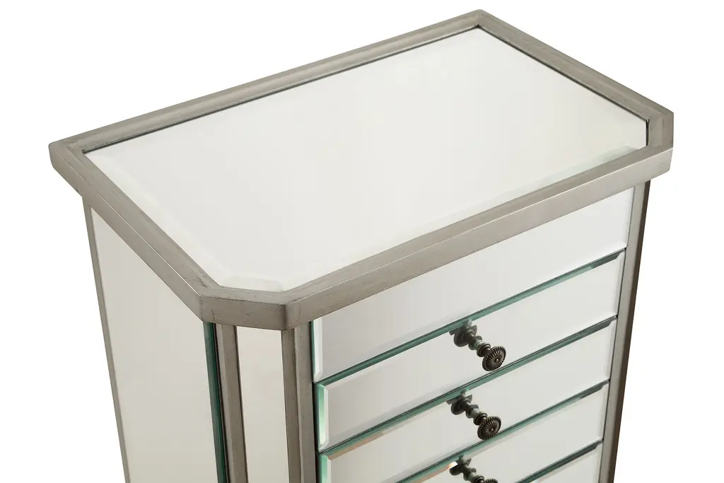 Contempo 41 Inch Silver With Clear Mirror Jewelry Armoire