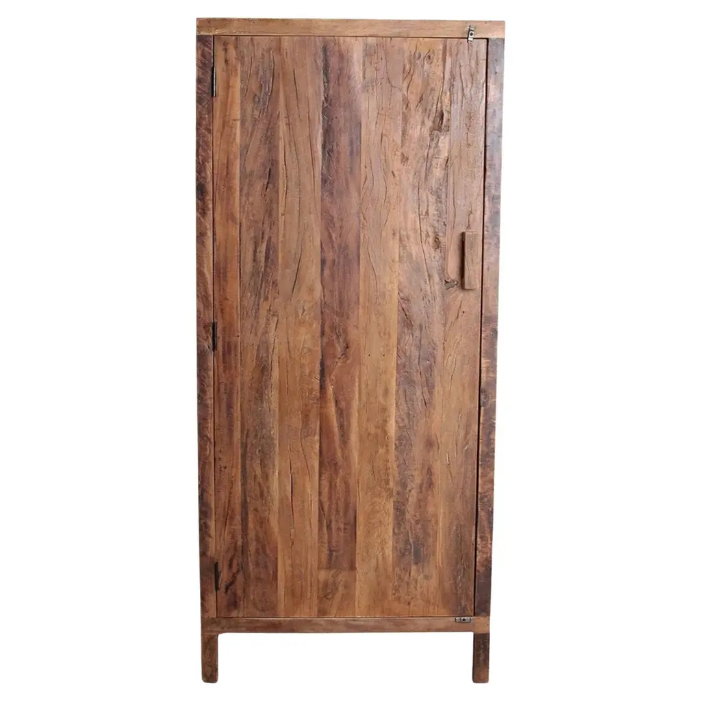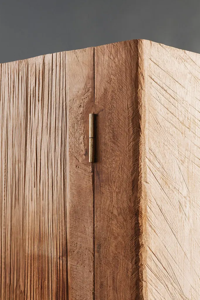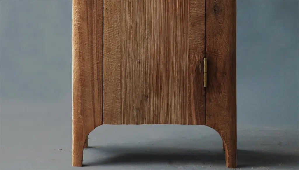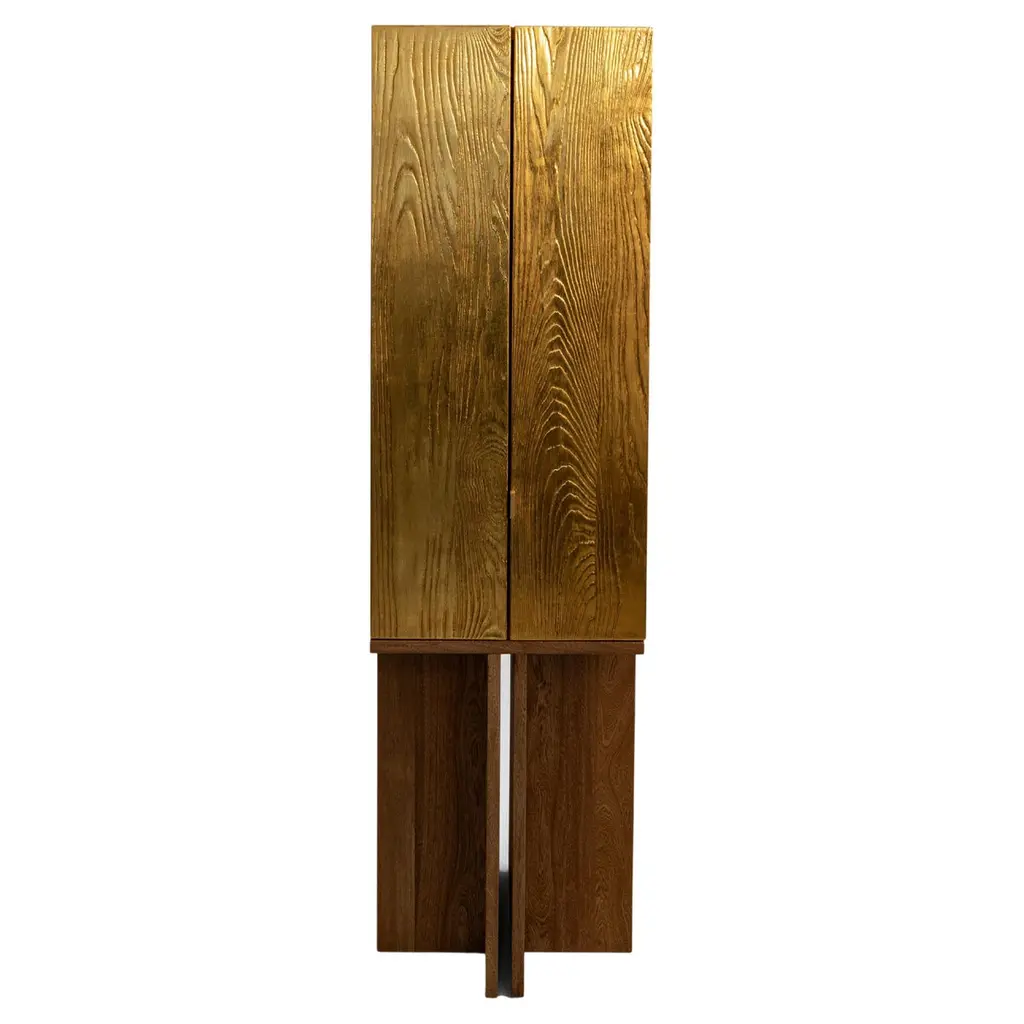Wardrobe made of solid oak (+ linseed oil)Measures:175 x 80 x 40 cmSÓHA design studio conceives and produces furniture design and decorative objects in solid oak in an authentic style. Inspiration to create all these items comes from the Russian North aesthetics with its severe nature, log huts black from time and climate and scant patterns. Wood is masterfully hand processed with chainsaw or chisel, whereby producing beautiful surface patterns. The wood is soaked in boiling baths of linseed oil, creating this special patina and making each creation a very unique piece. Reacting with tanning substances under high temperature, oil gives the objects expressive and natural colours, from light brown to charcoal-black. SÓHA offers a vast array of neo-primitivist interior objects. Our kitchen utensil, wall panels, sculptures and furniture solutions are executed in one unique style and will organically fit into the interior of your home. Each piece is one-of-a-kind handmade product.Unique piece made to order.