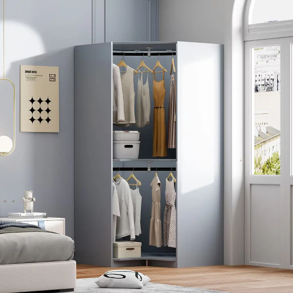 Corner Wardrobe Gray With Space-saving Design, Tall Clothing Armoires With 2 Practical Shelves, Modern Armoires For Neat Garment Storage-cuddlewood