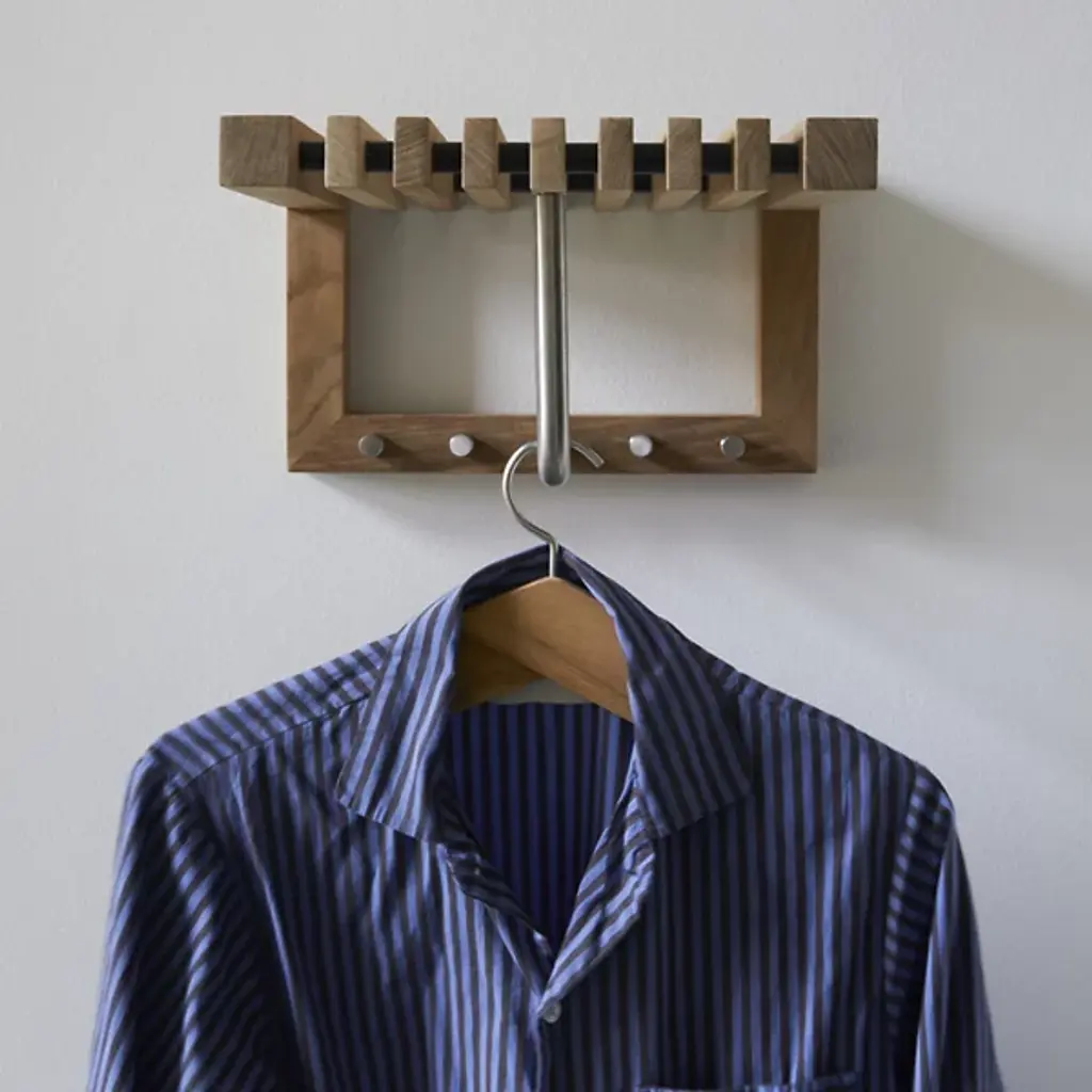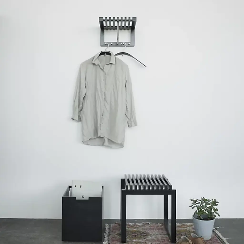 Maximize bedroom storage in a minimalist way with the Cutter Mini Wardrobe from Fritz Hansen. This wall-mounted clothing rack features a slatted silhouette that mounts directly to your wall. Expertly constructed from beautiful wood, the mini wardrobe includes a loop for the placement of hangers. The Cutter provides ample hanging room for shirts, dresses, and more while allowing air to circulate.
