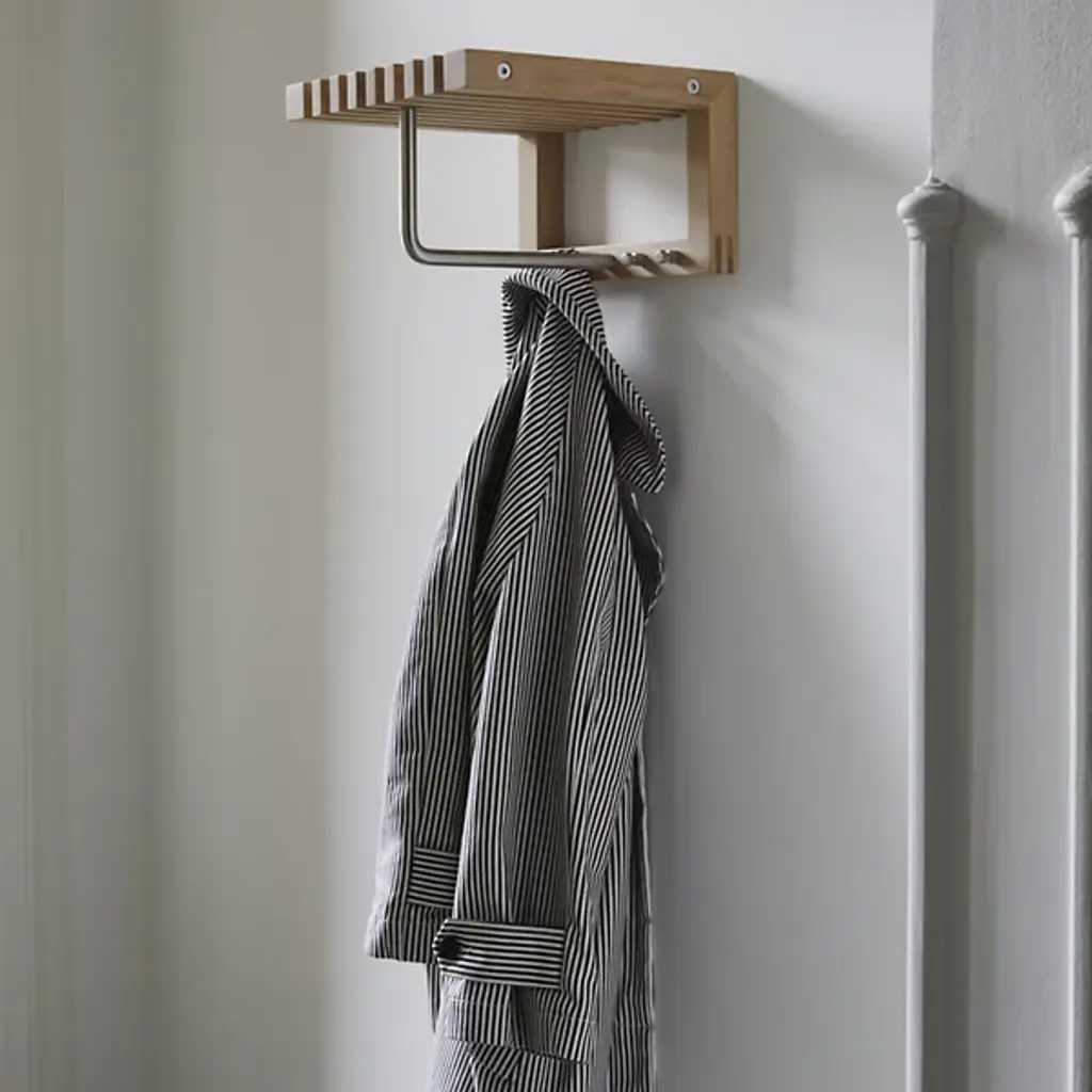 Maximize bedroom storage in a minimalist way with the Cutter Mini Wardrobe from Fritz Hansen. This wall-mounted clothing rack features a slatted silhouette that mounts directly to your wall. Expertly constructed from beautiful wood, the mini wardrobe includes a loop for the placement of hangers. The Cutter provides ample hanging room for shirts, dresses, and more while allowing air to circulate.