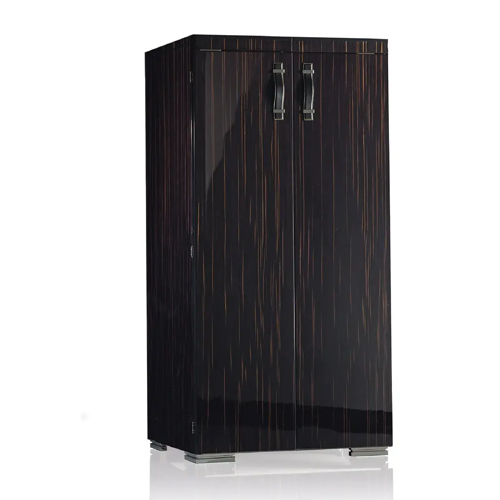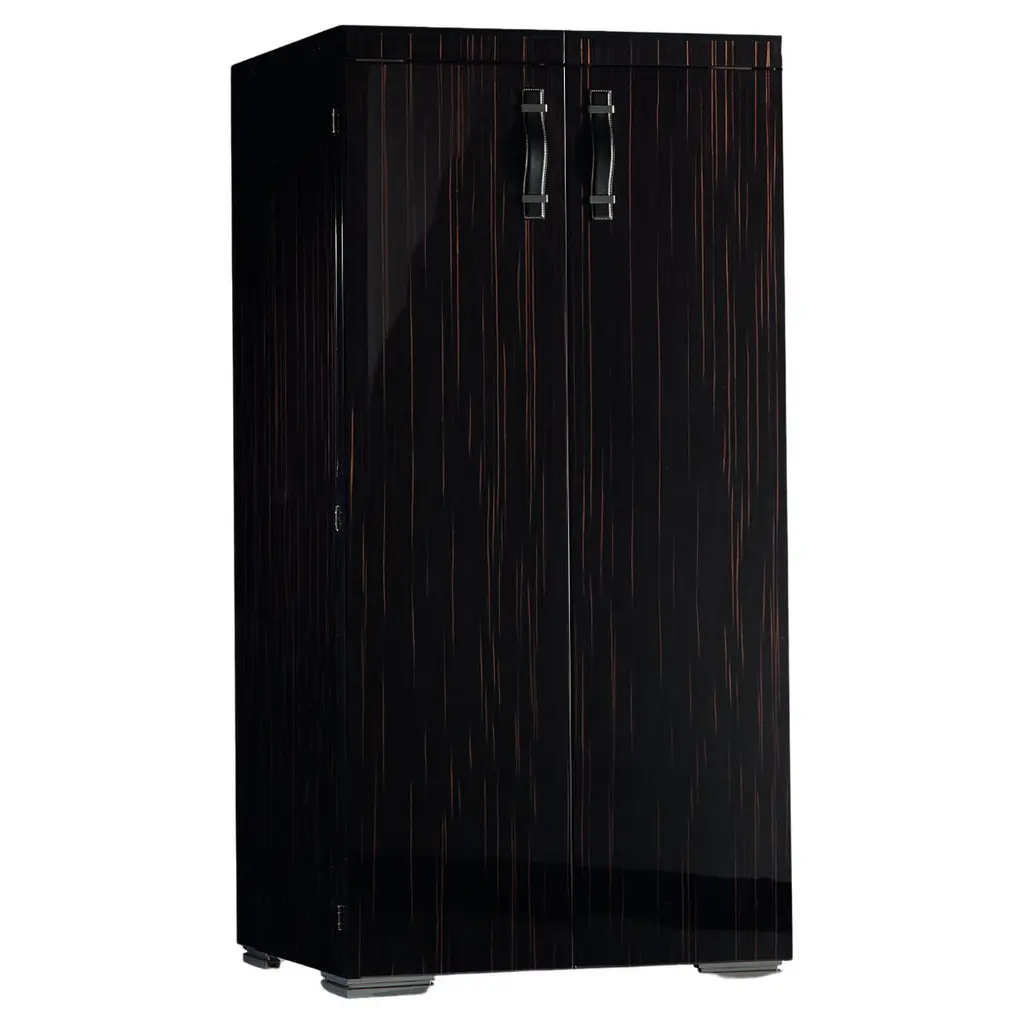 Since 1949, Agresti has crafted the pinnacle of luxury safes, trunks, and jewelry boxes in Florence, using only the finest materials, including full-grain leather, exotic woods, and textures like shagreen. As the premier name in high-end, custom solutions for safeguarding valuables, Agresti integrates cutting-edge security features: biometric access, secret compartments, unique keys, and hidden doorseverything you see in movies, they make real. Favored in multimillion-dollar estates, yachts, and private jets. Contact us to discover more about this exceptional product. Upgrade your home bar with the Ebony 2-Door Bar Armoire from Agresti Bella Vita. Crafted in polished ebony with leather handles and ruthenium brass accents, this exclusive piece features a LIEBHERR humidor for 500 cigars, hand cut crystal glasses, and more. Elevate your entertaining experience with this luxurious addition.
