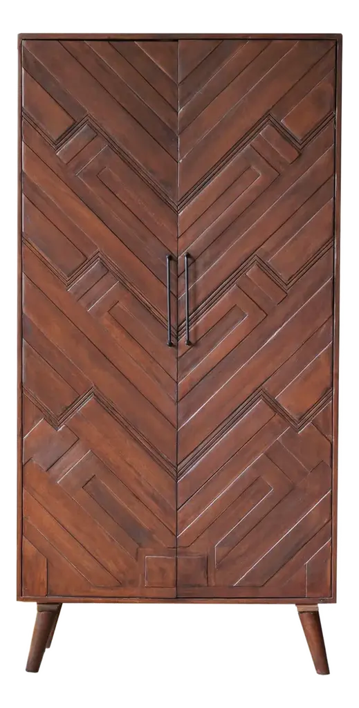 Intricately crafted from durable Indian mango wood, the Excelsior II is a stunning cabinet that features four doors. Finished in a natural light-brown polish, this stunning cabinet flaunts an intricate, star-in-circle raised pattern on the doors and is guaranteed to catch your attention from any corner of the room and elevate your space. The visually appealing body is supported by a sturdy, four-legged frame and X-shaped base finished in an antiqued-gold tone that not only adds to the look of the piece but also guarantees stability. With an intricate pattern that is complemented by a premium finish, the Excelsior II looks gorgeous in spaces based on the Lakeside and Enduring Elegance design styles.