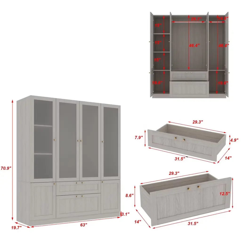 Famapy Modular Gray Combination Wardrobe: Customizable & Spacious Storage Solution