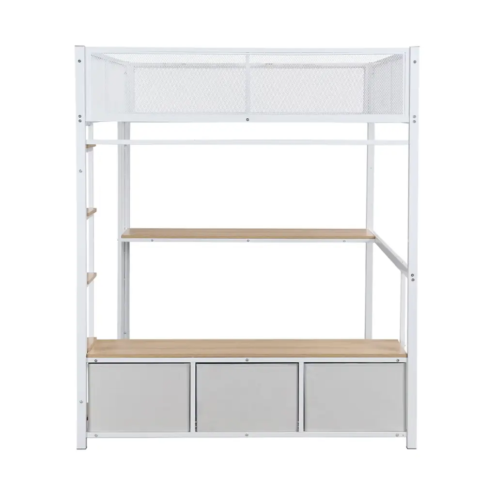 This metal loft bed with desk, shelf and ladder is a simple and stylish bed frame that goes well with a variety of decorative styles, allowing you to easily enhance and improve your space. Configured with LED light strips, it not only brings convenience to your life, but also adds different atmospheres to the room with different colors. With a sturdy metal and wooden frame and sturdy supporting metal slats, this bed is durable and ensures that it will accompany you for many years.Product Detail:- Product Type:Loft Bed- Size:Full- Overall Product Dimension:77.8"L x 56.1"W x 66.9"H- Overall Product Weight:125 LBS- Detail Dimension: Please refer to the Size picture- Weight Capacity: 400 LBS- Material: Metal+MDF- Recommended Mattress Thickness: 6'' (The mattress is not included)- Number of Packages: 2 (Packages shipped separately may not arrive at the same time, please be patient.)- Assembly Required:YesWhat's in the box:- Bed * 1- Tools included- Instruction manual