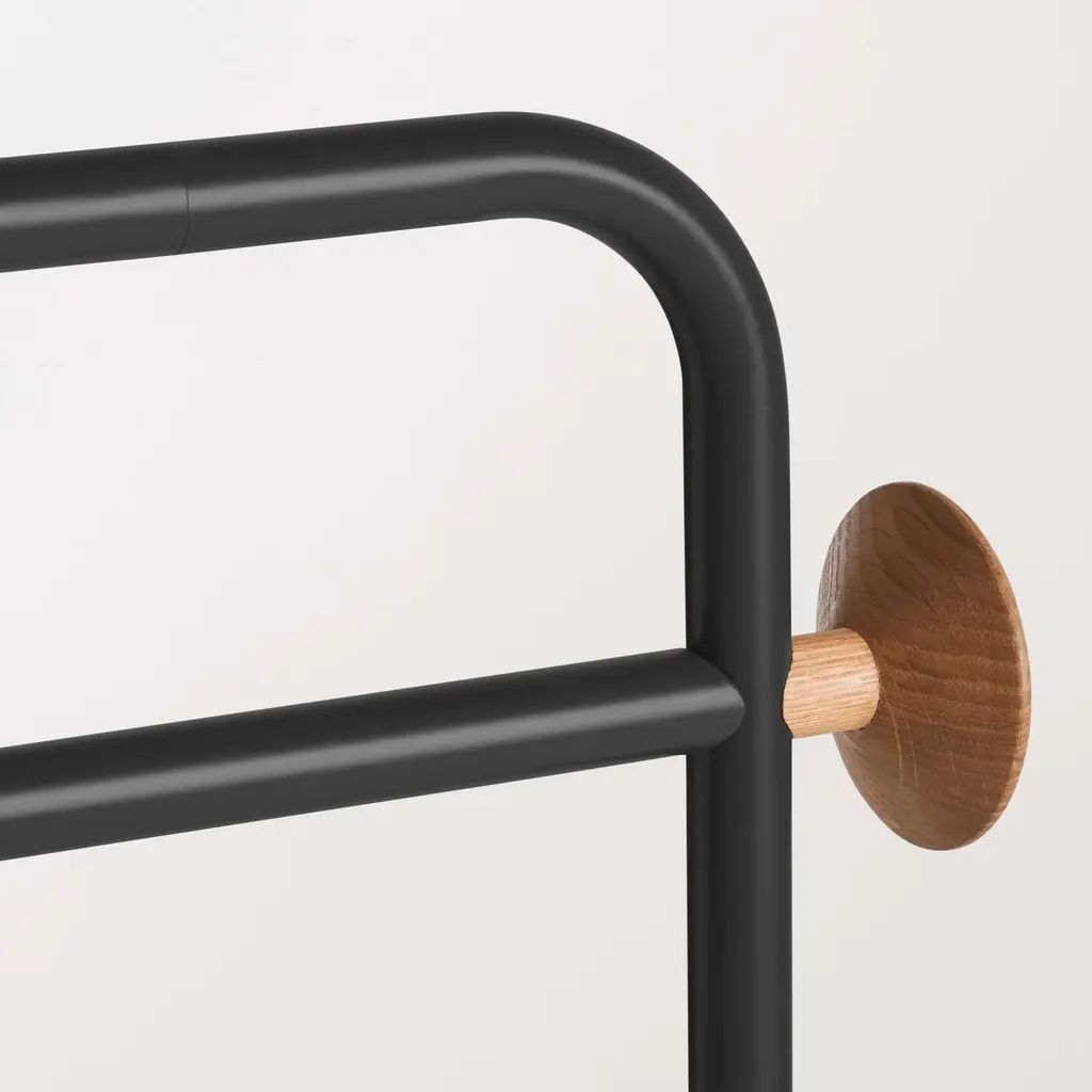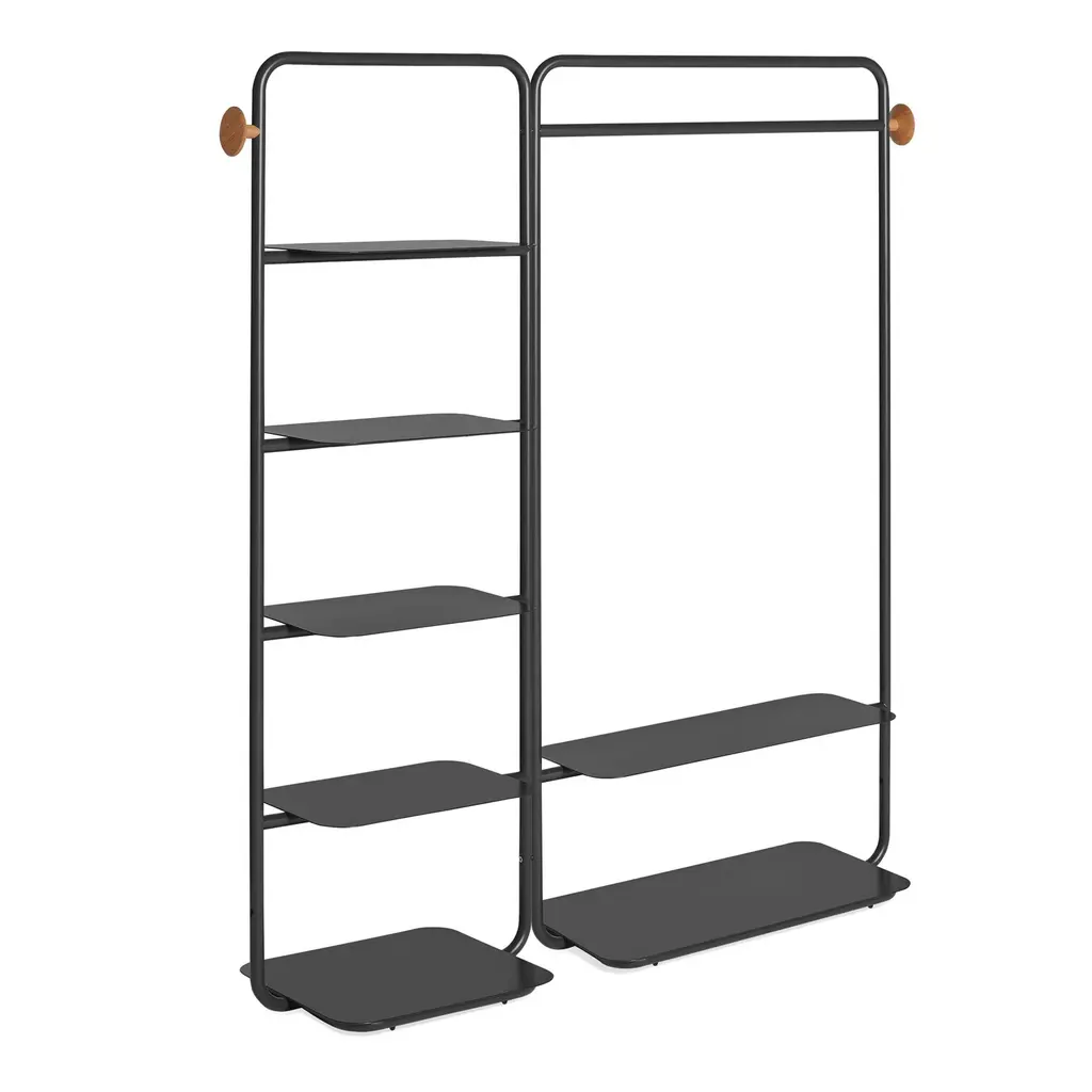 Show your clothes a good time. Garden Party is the perfect storage for people who have no storage. Durable powder-coated steel creates a clean and quiet spot to stage outfits or showoff your full regalia. Solid white oak knobs provide an extra spot to hang accessories. Garden Party Storage Boxsold separately.