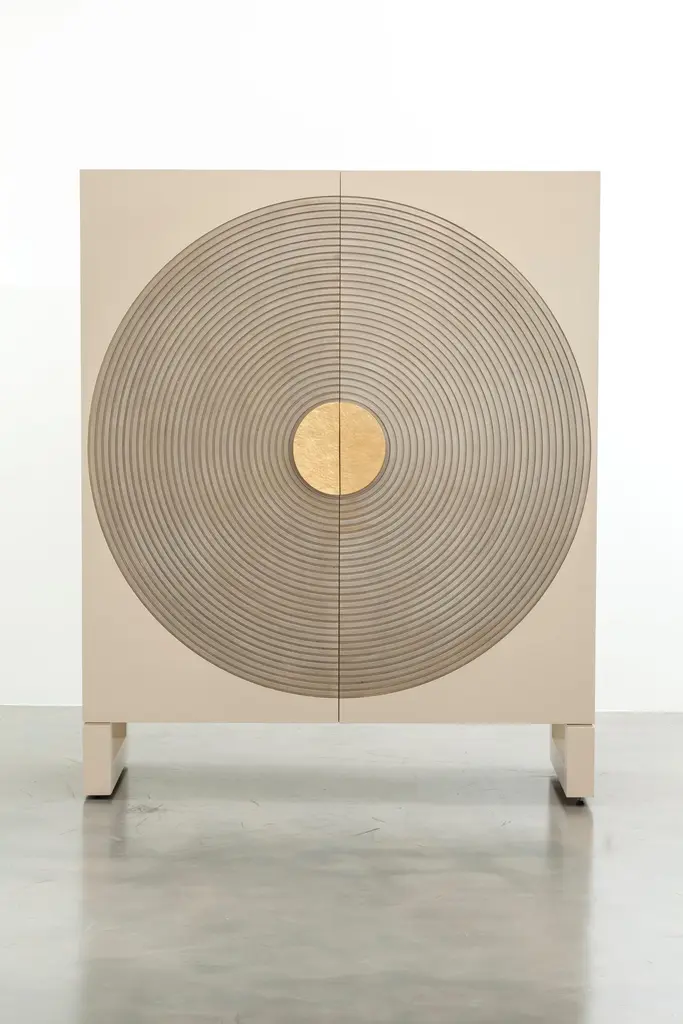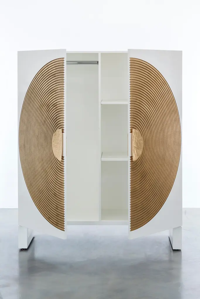 Halo Wardrobe - Modern Lacquer Body With Gold Leaf Inlay And Gold Leaf Handles