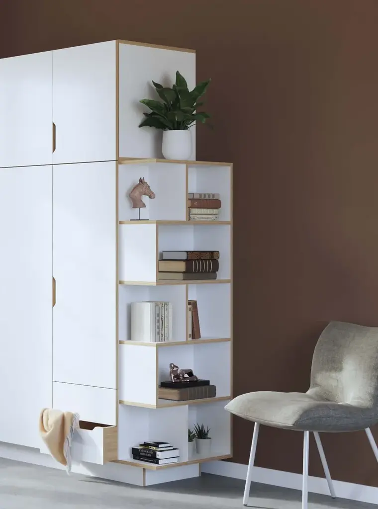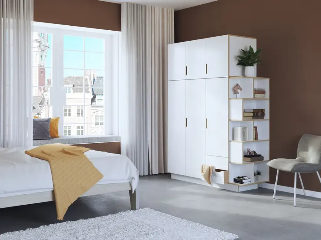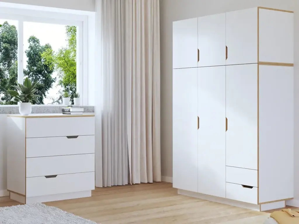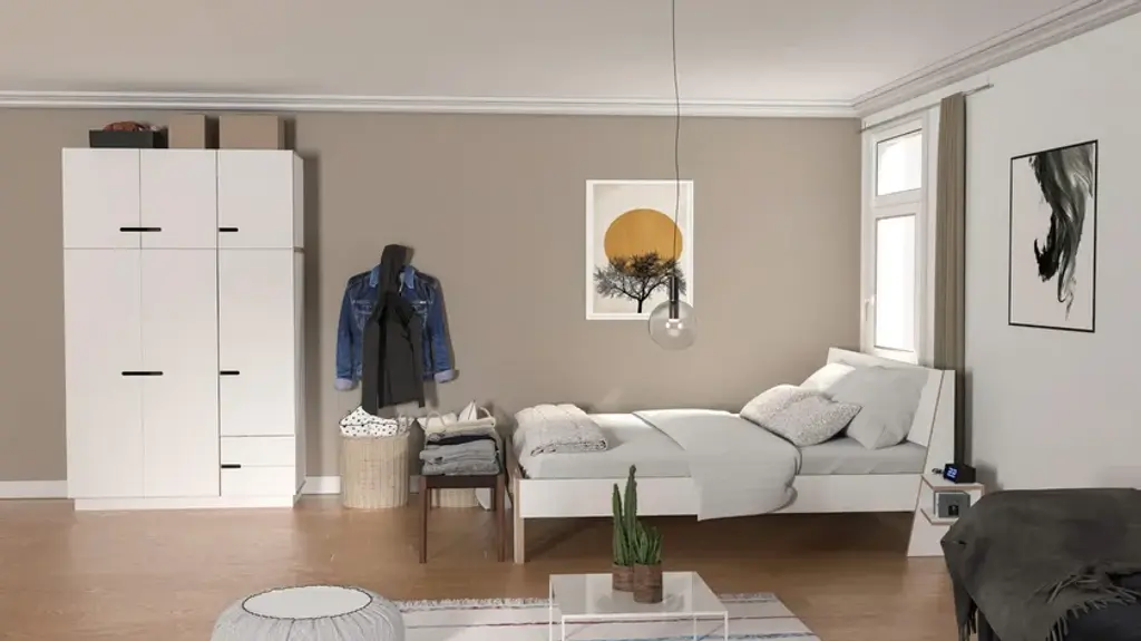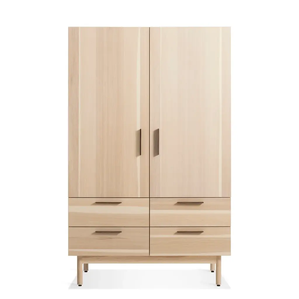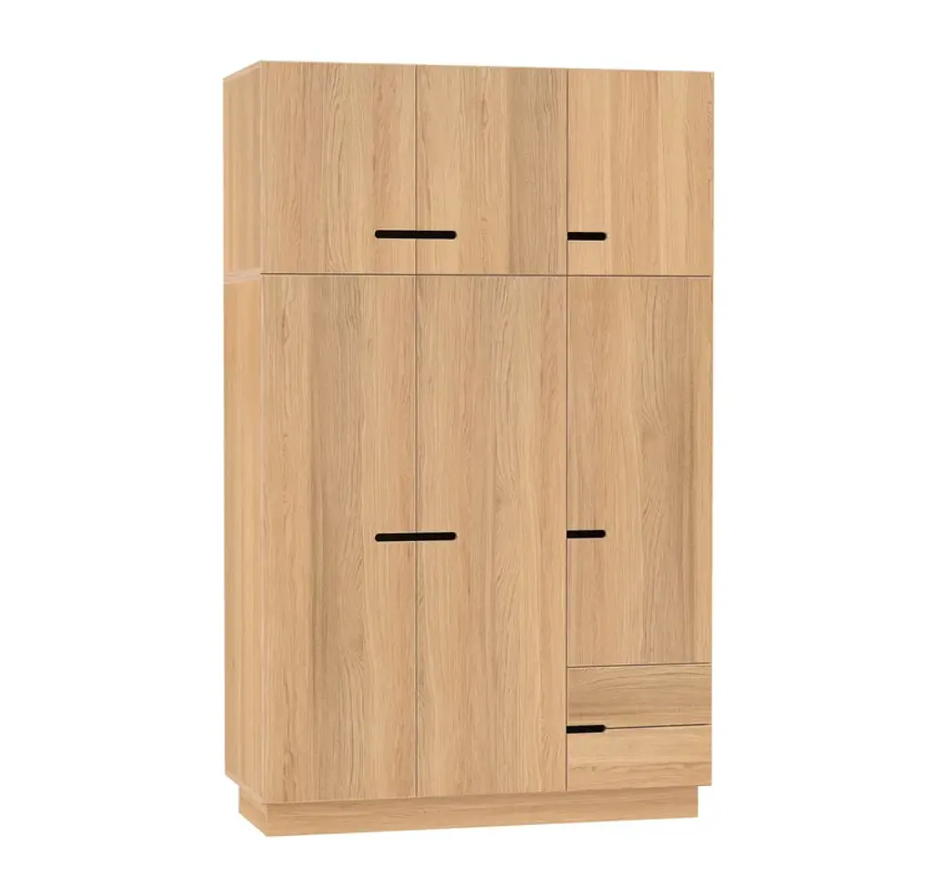 This wardrobe organises all your clothes, having space for your dresses, jackets and coats, with drawers for underwear, socks and ties.One doors hides an upper shelf and rail for hangers 41 cm long. Behind the second door there are 3 adjustable shelves and beneath them 2 large drawers. On extra level there is also an adjustable shelf.Made of birch plywood, oilwaxed. Soft close Häfele door hinges and hidden drawer rails. Doors Koskisen white CPL on plywood, Häfele metal bars inside to keep long doors straight. You can choose between two handle designs. An 8 cm high plinth that fits well with all skirting boards.In addition, it is now possible to add a 24 cm deep shelf to the wardrobe.Collection HUH was nominated for Estonian design award Bruno 2014.The HUH collection is marked by wider, oblate legs. The year 1975 is back again. People have time for books and contemplation… Choose only one – desk, night table, media stand, dining table or take them all. Play Stayin' Alive and enjoy the moment. It was nominated for Estonian design award Bruno 2014.