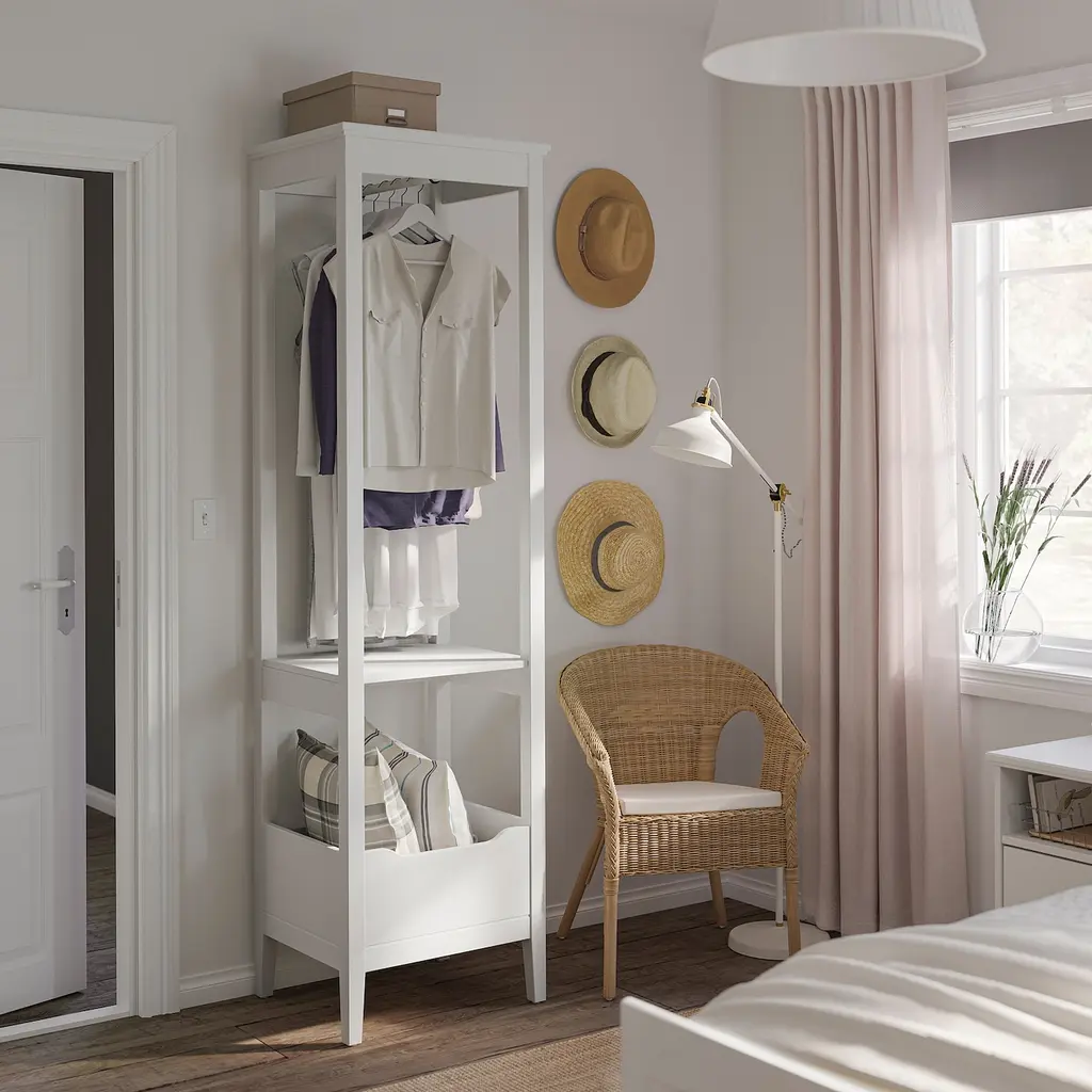 IDANÄS Open wardrobe - white 23 1/4x83 1/8 ". Of course your home should be a safe place for the entire family. That’s why a safety fitting is included so that you can attach the wardrobe to the wall. You get a good overview and can easily reach your clothes.